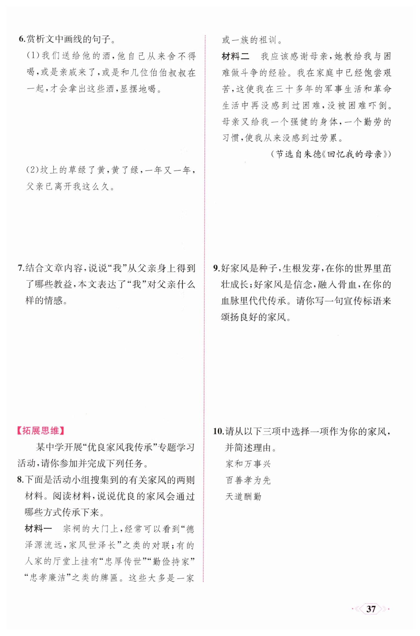 ①祖輩的遺訓(xùn);②父母的言傳身教。