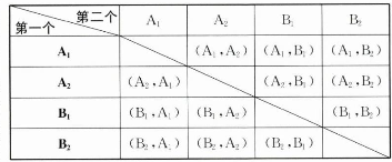 $∴P(兩人恰好選中同一類)=\frac{4}{16}=\frac{1}{4}.$