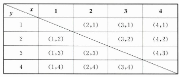 $,x、y滿足xy<6的有(1,2)、(1,3)、(1,4)、(2,1)、(3,1)、(4,1),共6種結(jié)果,$