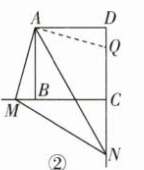 $解:猜想:DN-BM=MN$ $證明:在線(xiàn)段DN上截取DQ=BM,連接AQ$ $在△ADQ和△ABM中$ $\begin{cases}{\ AD=AB}\ \\ { ∠ADQ=∠ABM } \\{ DQ=BM} \end{cases}$ $∴△ADQ≌△ABM(SAS)$ $∴∠DAQ=∠BAM,AQ=AM$ $∴ ∠QAN= ∠MAN$ $在△AMN 和△AQN 中$ $\ \begin{cases}{ AM=AQ }\ \\ { ∠MAN=∠QAN } \\{ AN=AN} \end{cases}$ $∴△AMN≌△AQN(SAS),∴MN=QN$ $∴DN-DQ=QN$ $∴DN-BM=MN $