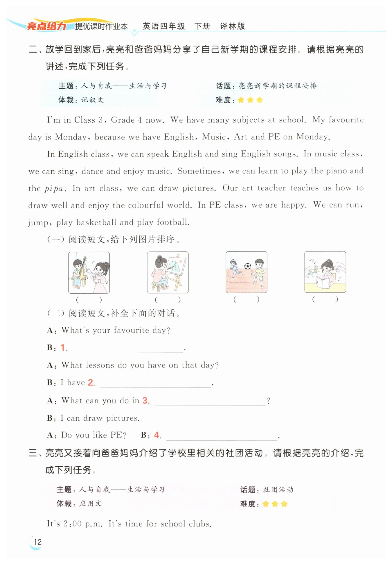 English, Music, Art and PE