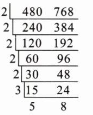 輾轉(zhuǎn)相除法:768÷480=1……288 480÷288=1……192