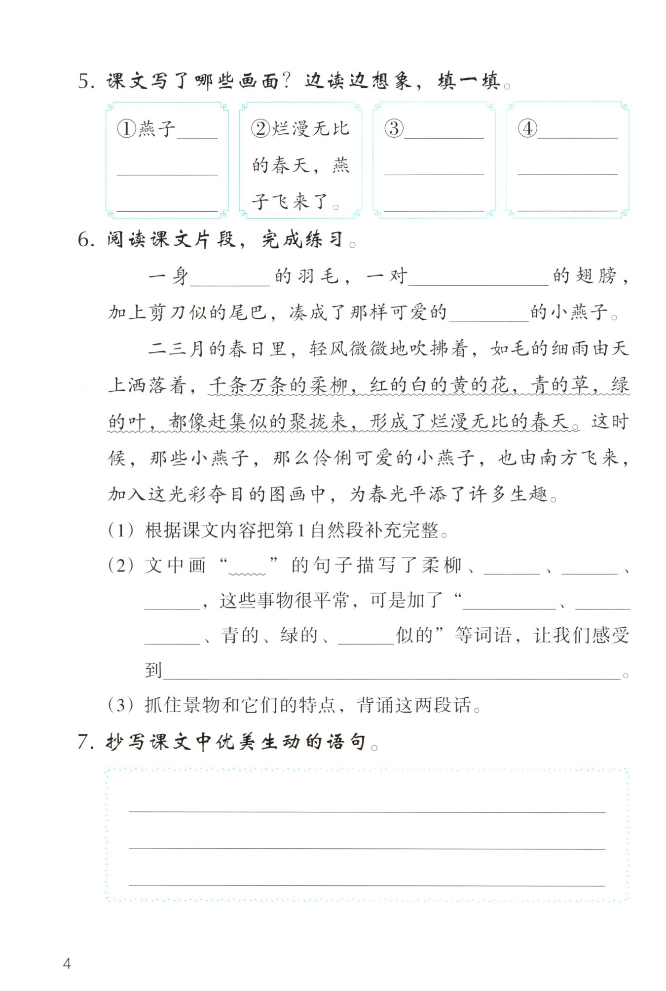 示例:二三月的春日里,輕風微微地吹拂著,如毛的細雨由