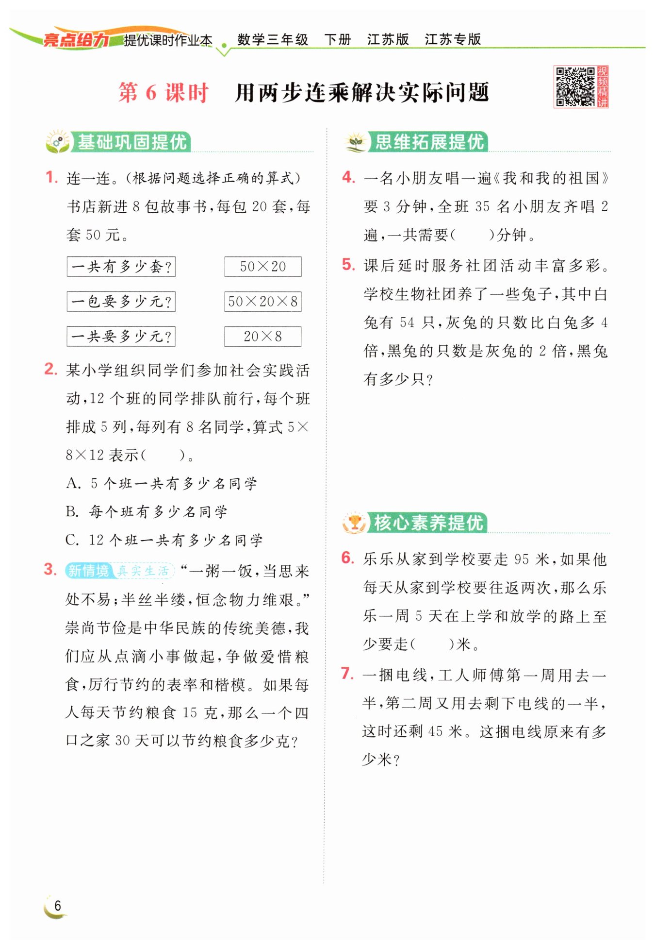 答:一個四口之家30天可以節(jié)約糧食1800克。