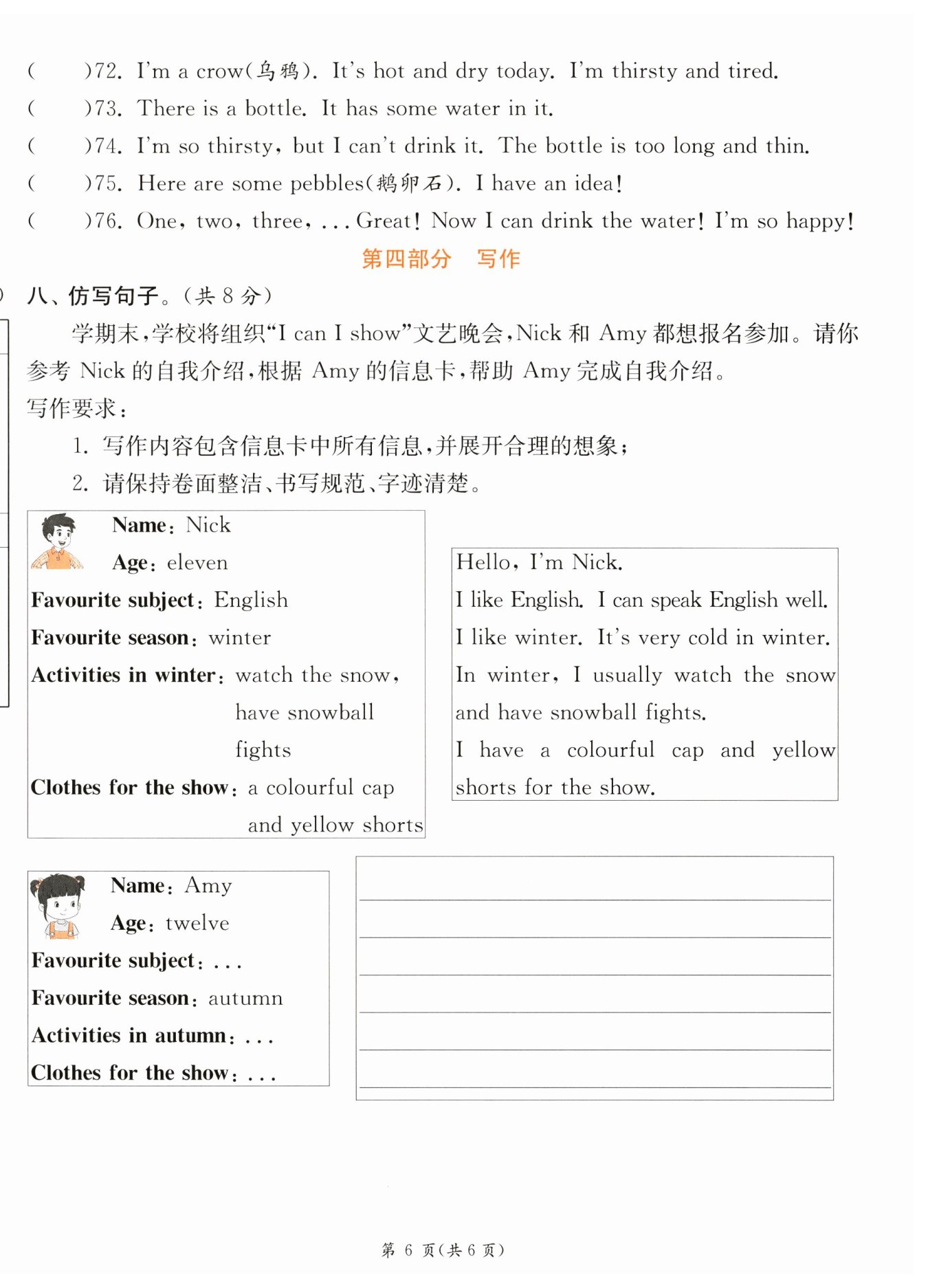 Hello, I'm Amy. I'm twelve years old. I like Art. I can draw some pictures. I like autumn. It's very cool in autumn. In autumn, I usually go climbing and have picnics. I have a beautiful coat and a jacket for the show.