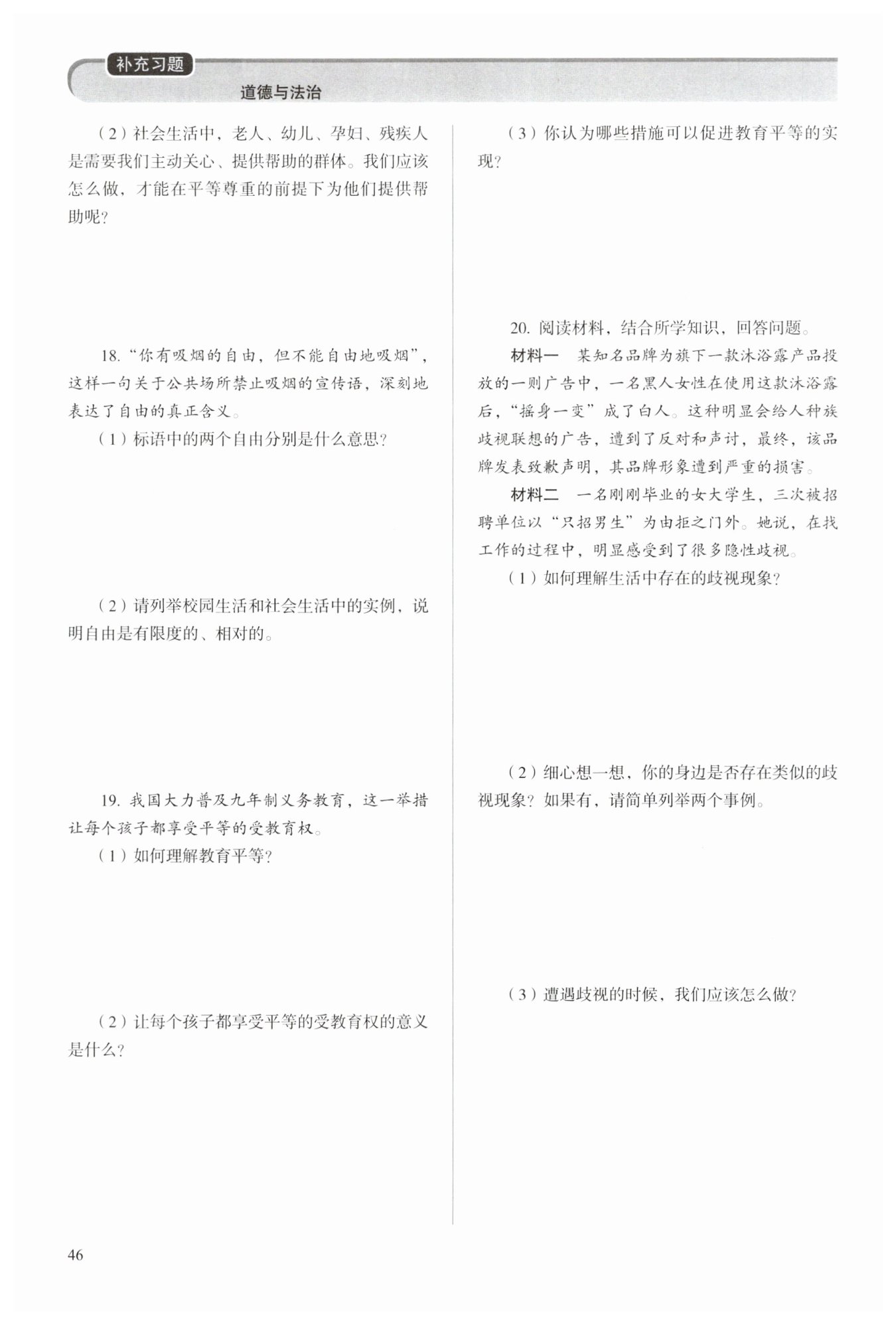 平等的權(quán)利與機(jī)會(huì),能促進(jìn)個(gè)人素質(zhì)、