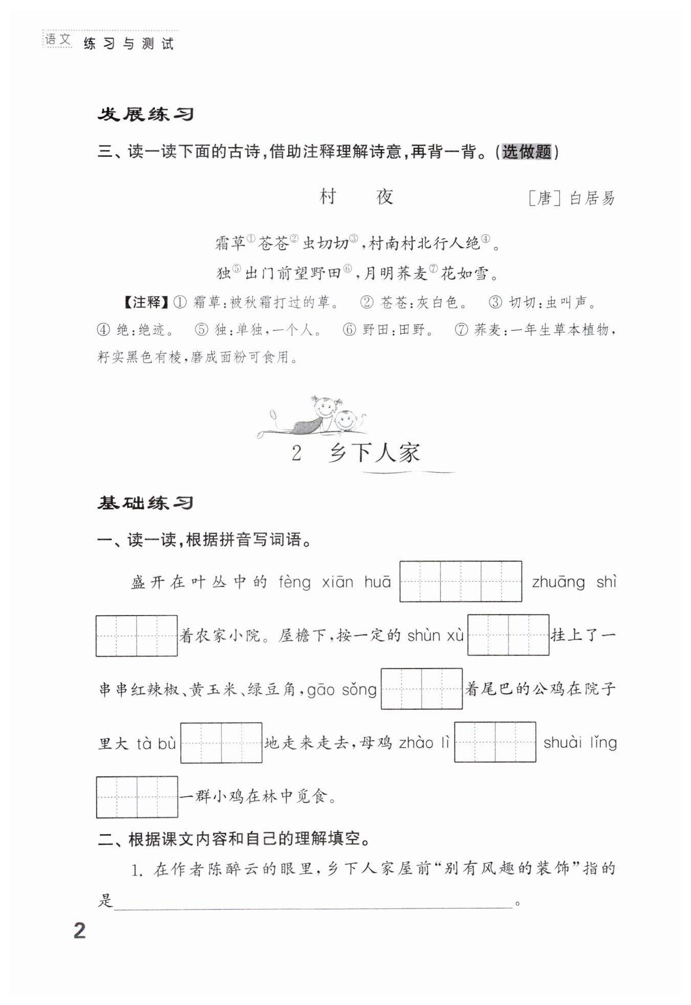 詩(shī)意:被寒霜打過的灰白色秋草中,小蟲在竊竊私語(yǔ)著,山村周圍行人絕跡。我獨(dú)自來(lái)到前門眺望遠(yuǎn)處田野,明月映照下的蕎麥花白如雪。(注:按照自身實(shí)際背誦即可。)