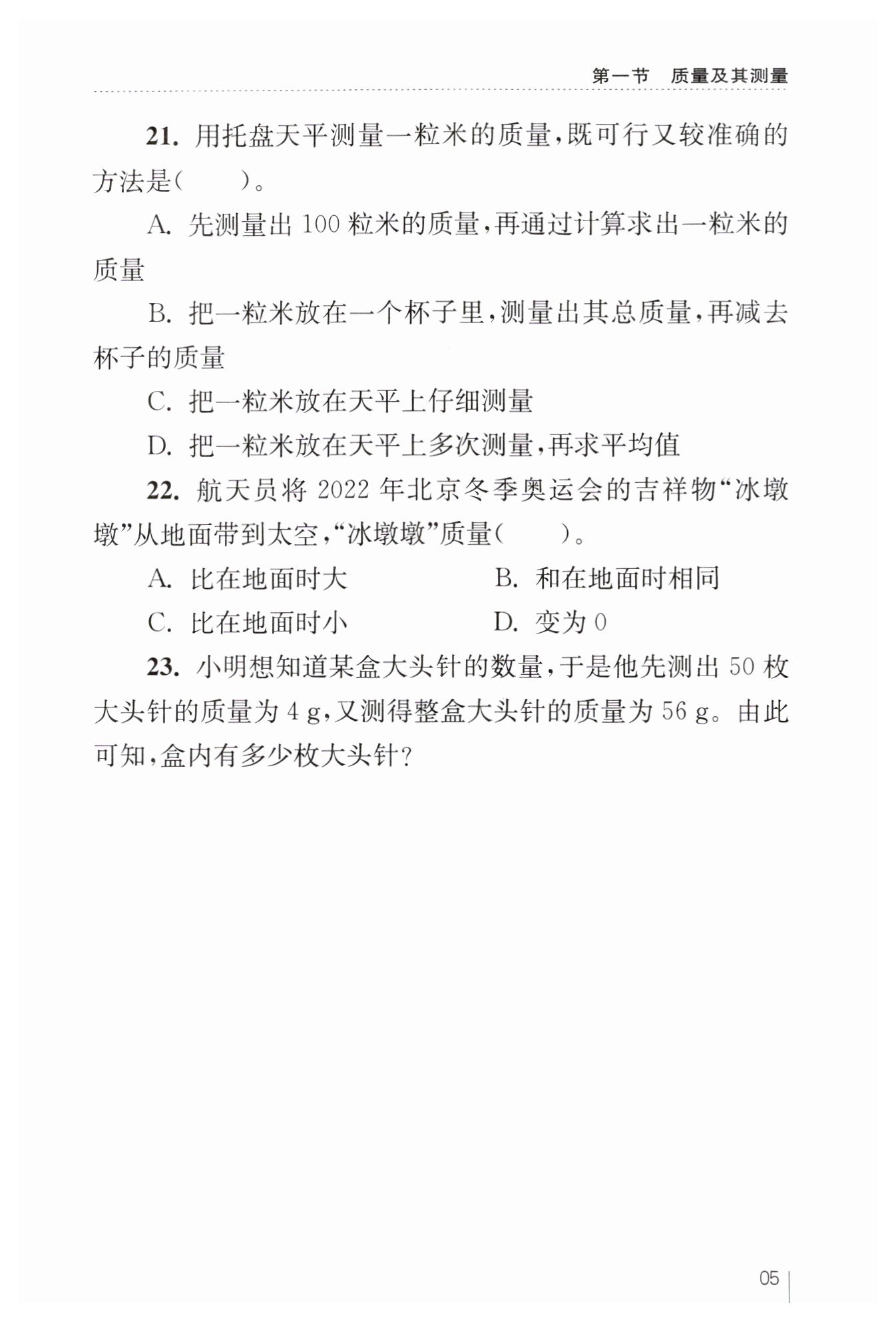 $解:1枚大頭針的質(zhì)量為\frac 4{50}g=0.08g$