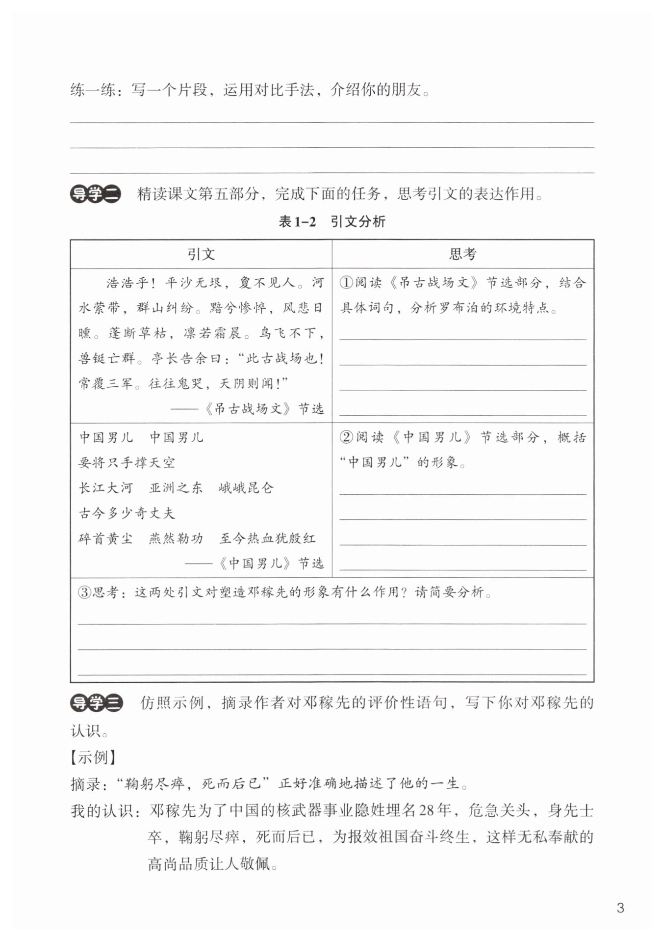 處引文引用《中國男兒》的歌詞,借以贊頌鄧稼先為祖國不畏艱難、