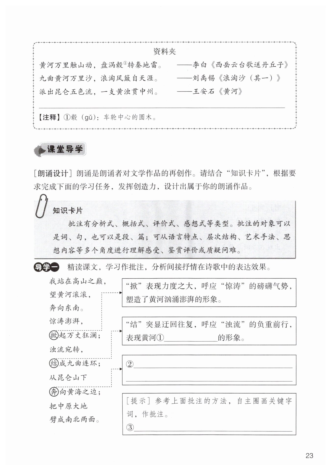 [示例]“劈”寫出黃河力量之大,氣勢之足,結(jié)