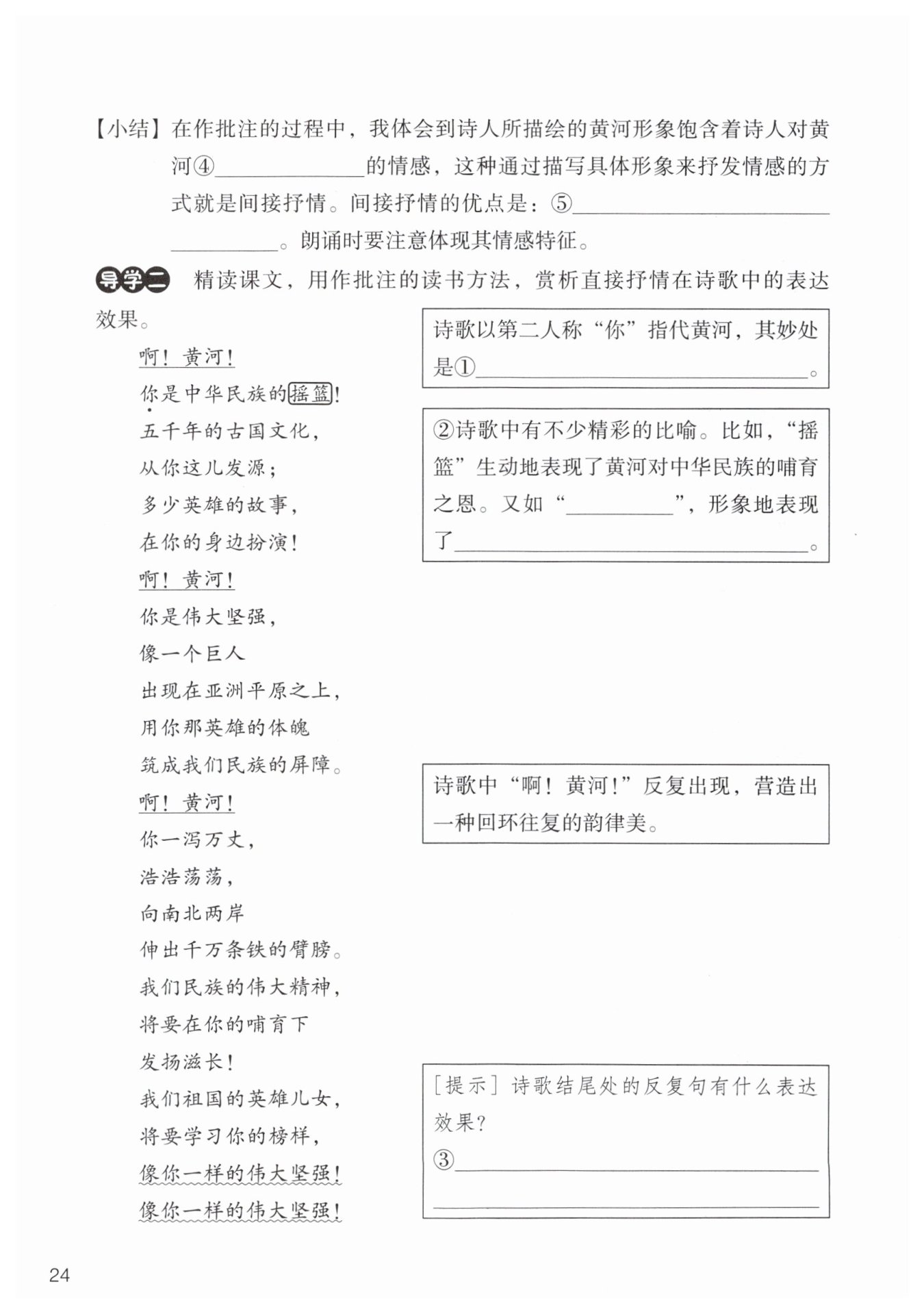 對(duì)黃河精神的贊嘆,強(qiáng)調(diào)了歌頌黃河、