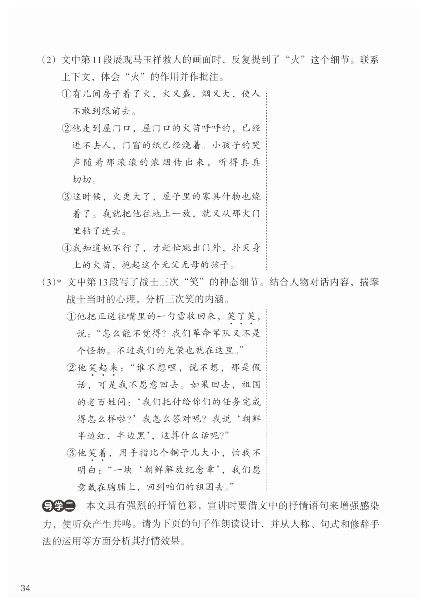 [示例]第一處“笑”展現(xiàn)了戰(zhàn)士