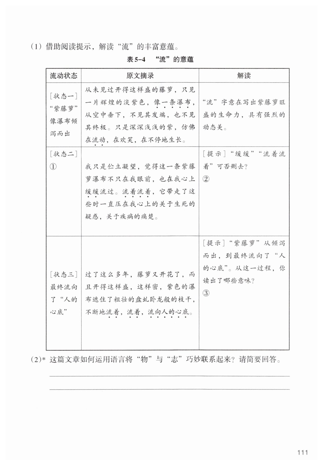 ②不能刪去?!熬従彙薄傲髦髦?,含有從看花到被花感動的過程,將紫藤蘿瀑布從視覺上自然延伸至“心上”,巧妙地實現(xiàn)了從觀察外物到內(nèi)心感悟的自然轉(zhuǎn)換,最終達到了“物我相融”的境界。