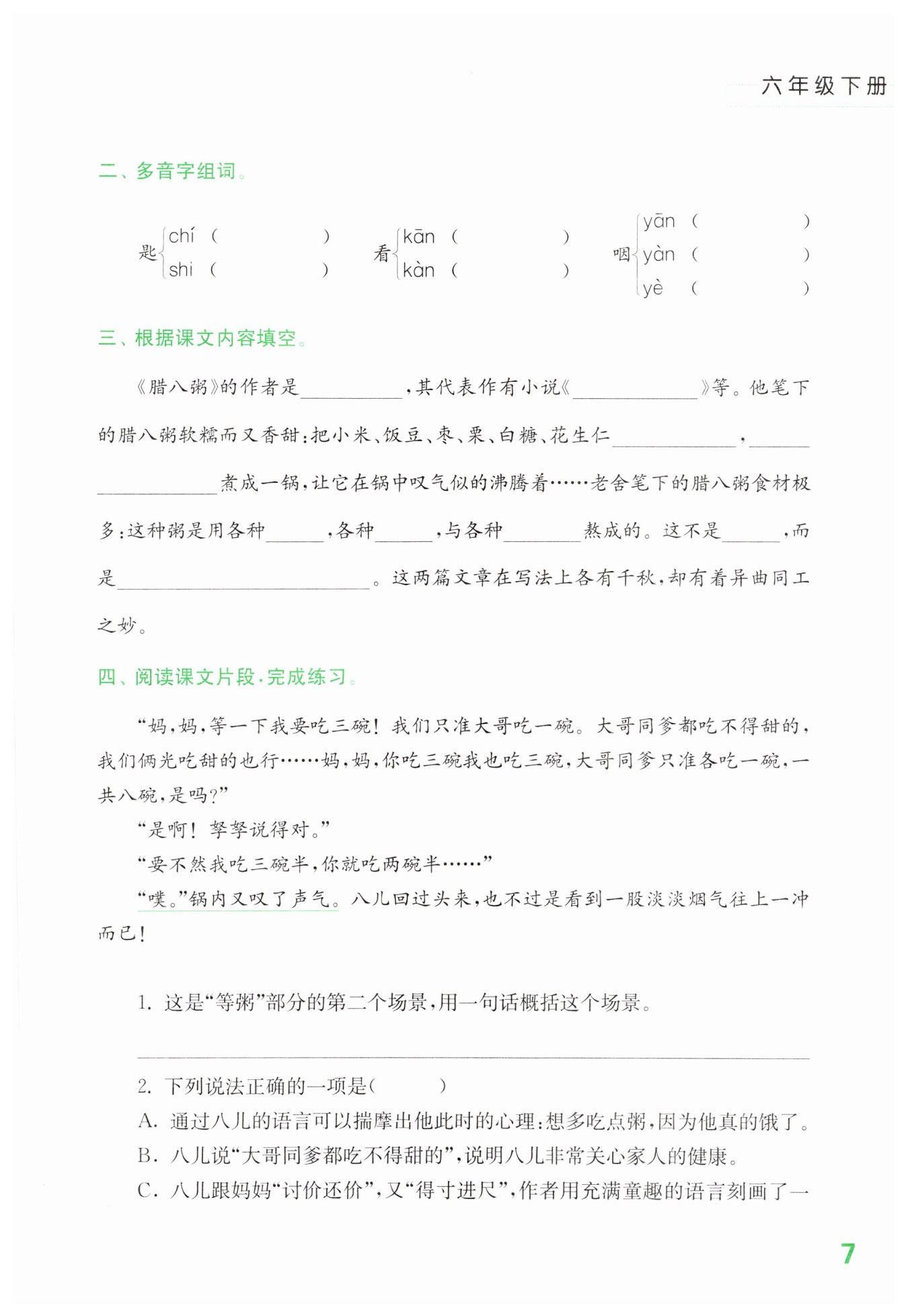 八兒和媽媽說如何分粥。