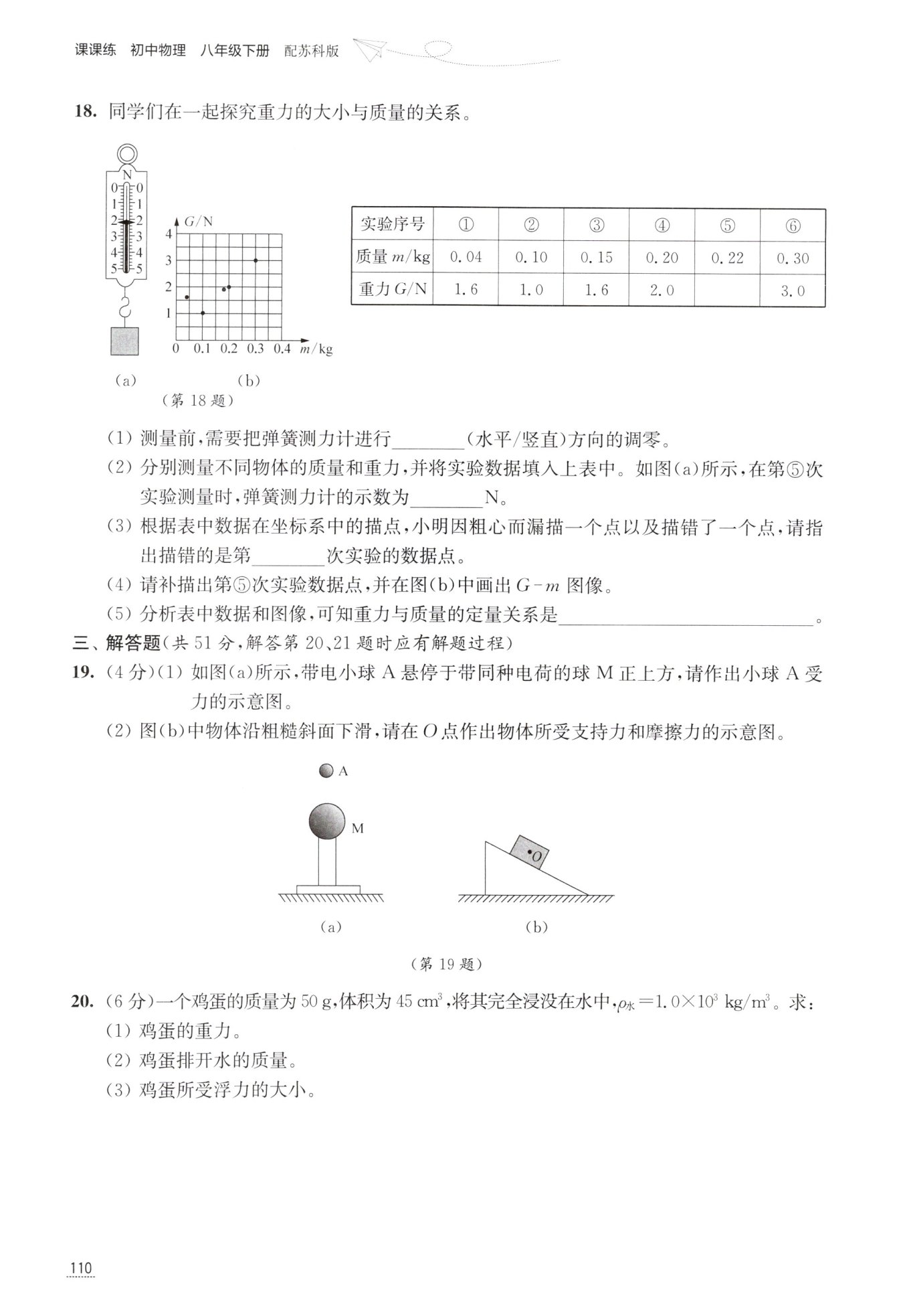 (2)雞蛋完全浸沒在水中,則?$V_{排}=V = 45cm^3 = 4.5×10^{-5}m^3,$?