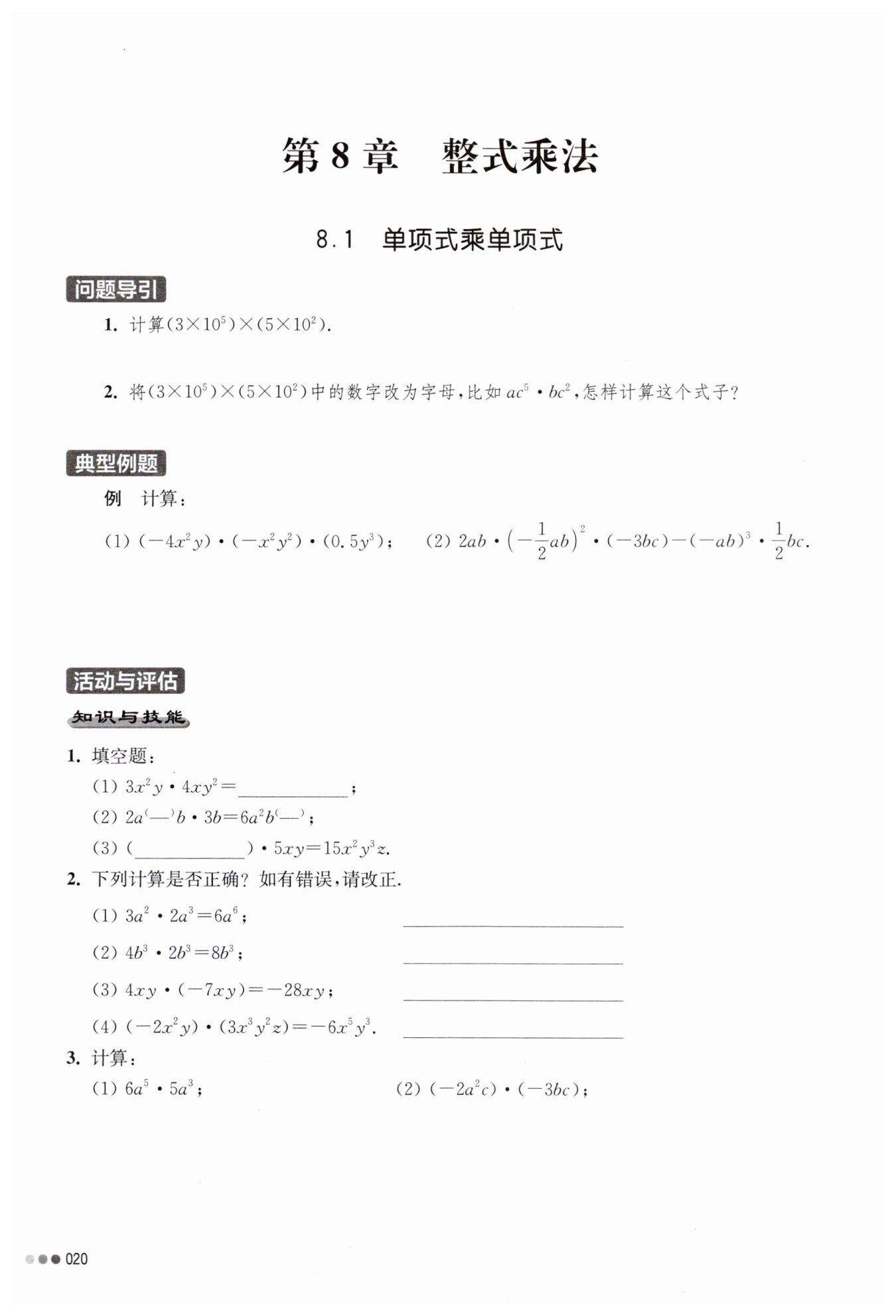 解?$:(2)$?原式?$=2ab×\frac {1}{4}a2b×(-3bc)-(-a3b3)×\frac {1}{2}bc$?