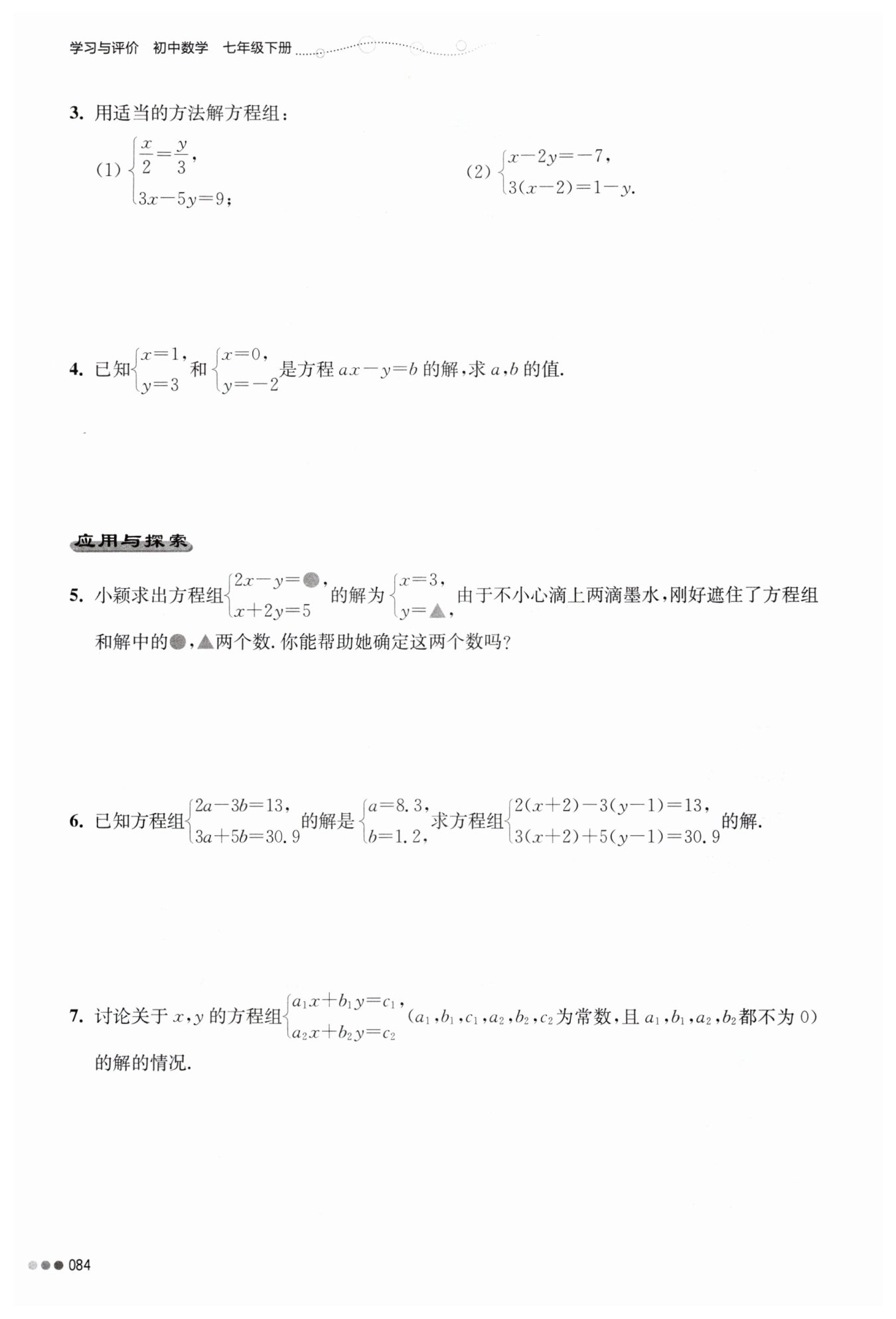 當(dāng)?$a_{2}b_{1}?a_{1}b_{2}≠0$?時(shí),整理得?$a_{1}a_{2}≠b_{1}b_{2},$?方程⑤有唯一解,即此時(shí)方程組有唯一解