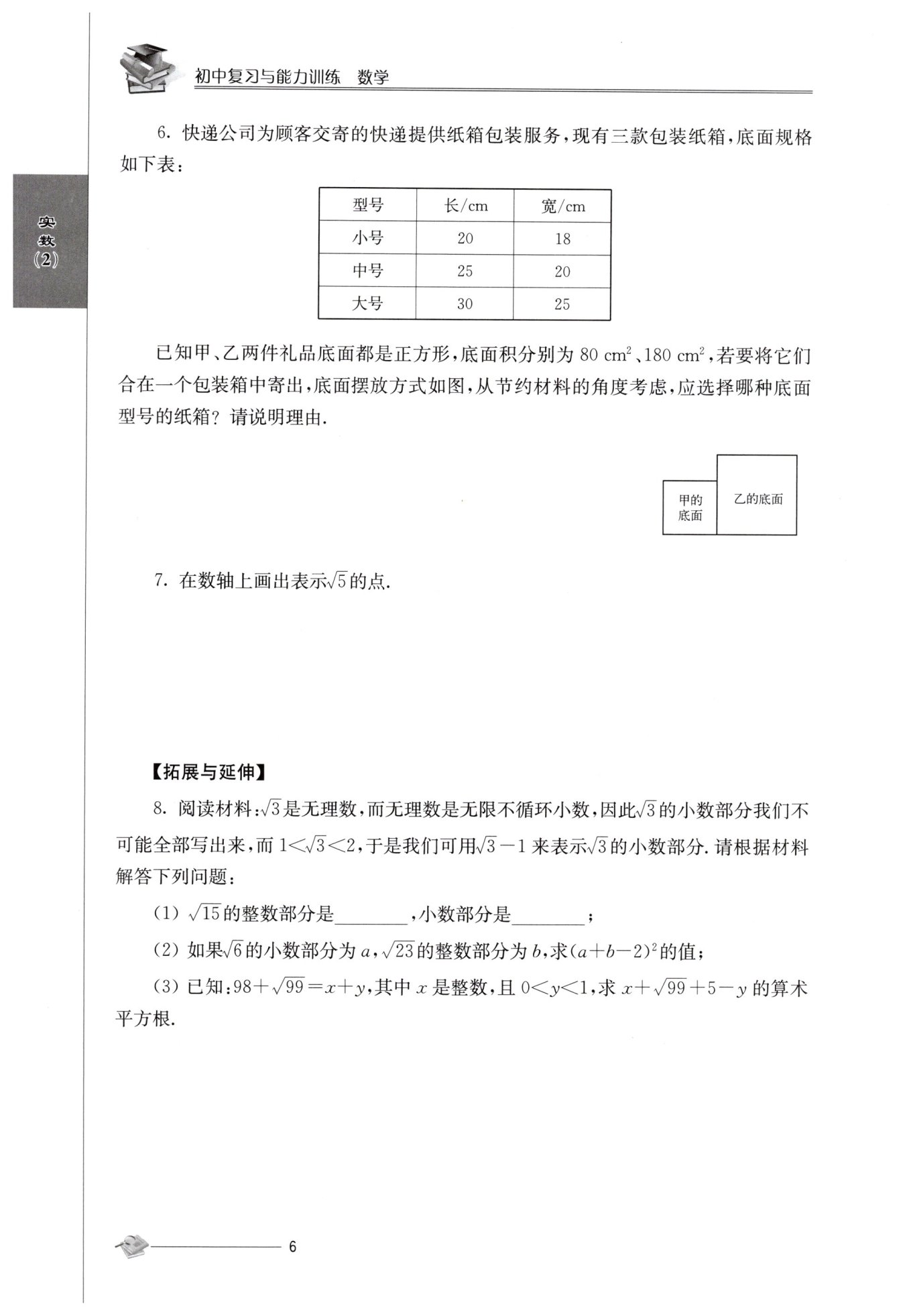 (3) 因?yàn)?9\lt\sqrt{99}\lt10,$所以$98+\sqrt{99}$的整數(shù)部分$x=98 + 9=107,$小數(shù)部分$y=98+\sqrt{99}-107=\sqrt{99}-9。$