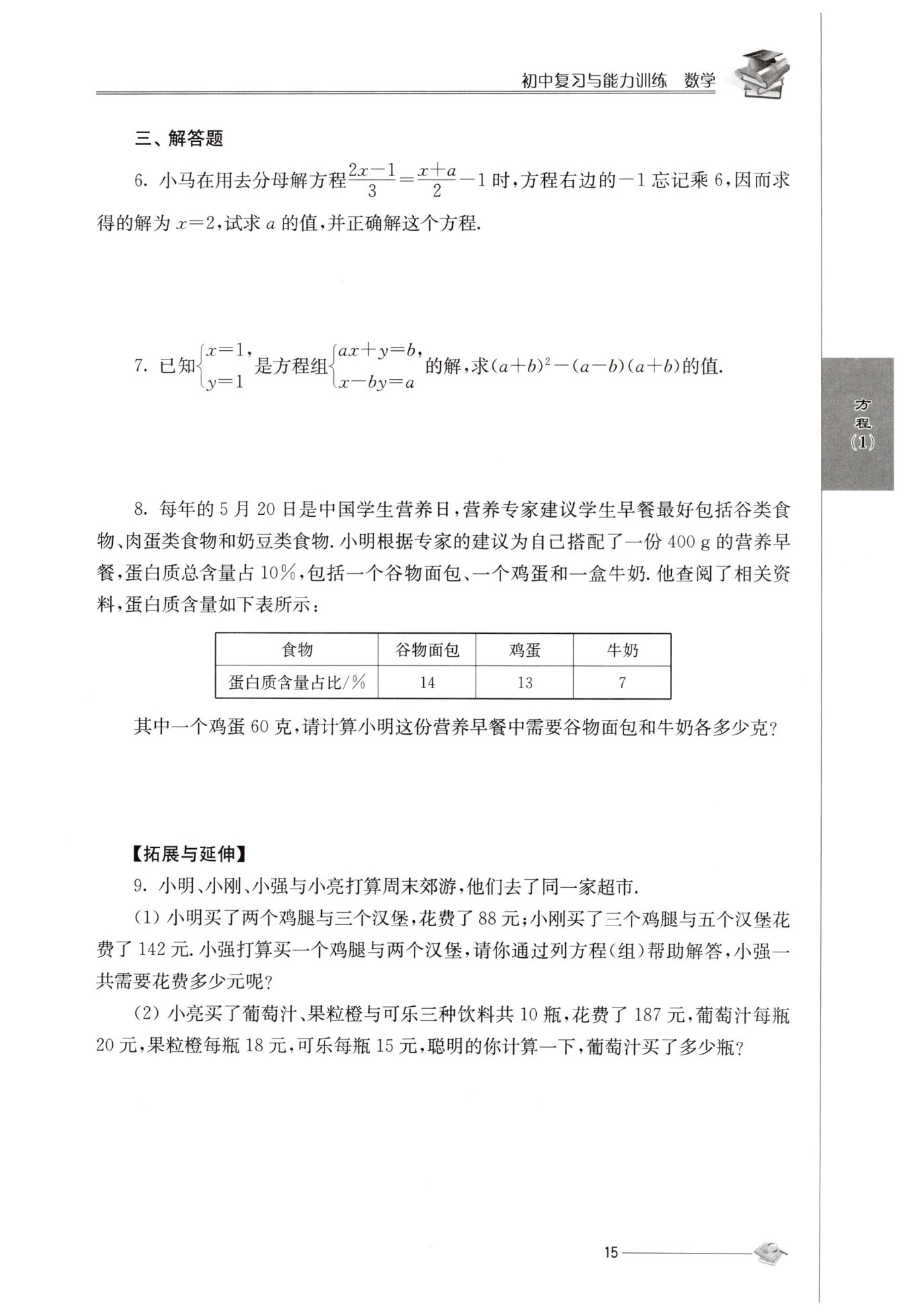 則一個(gè)雞腿與兩個(gè)漢堡共花費(fèi):$14 + 2\times20 = 54$(元)