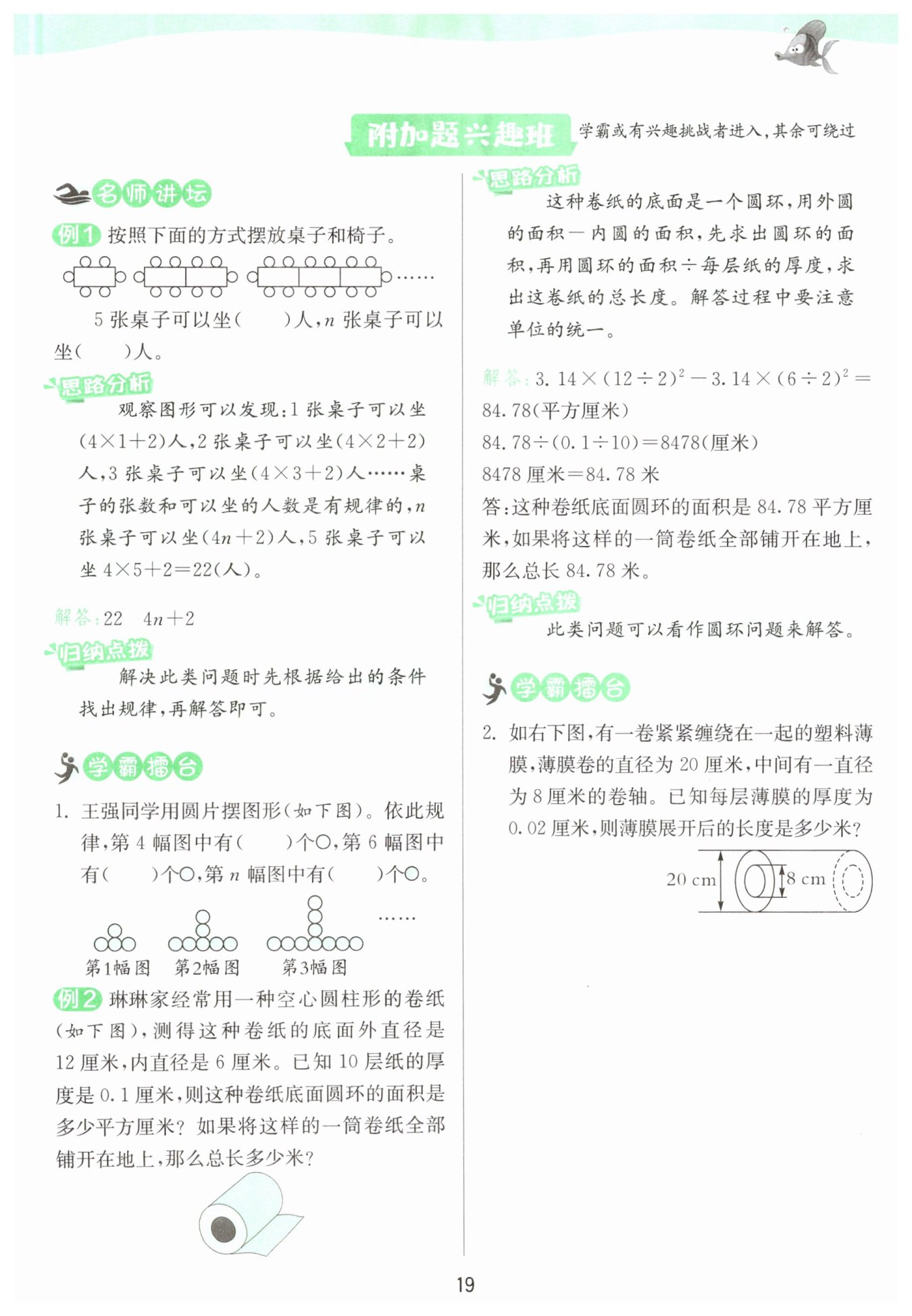 圓環(huán)面積:?$3.14×(10^2-4^2)= 263.76($?平方厘米?$)$?