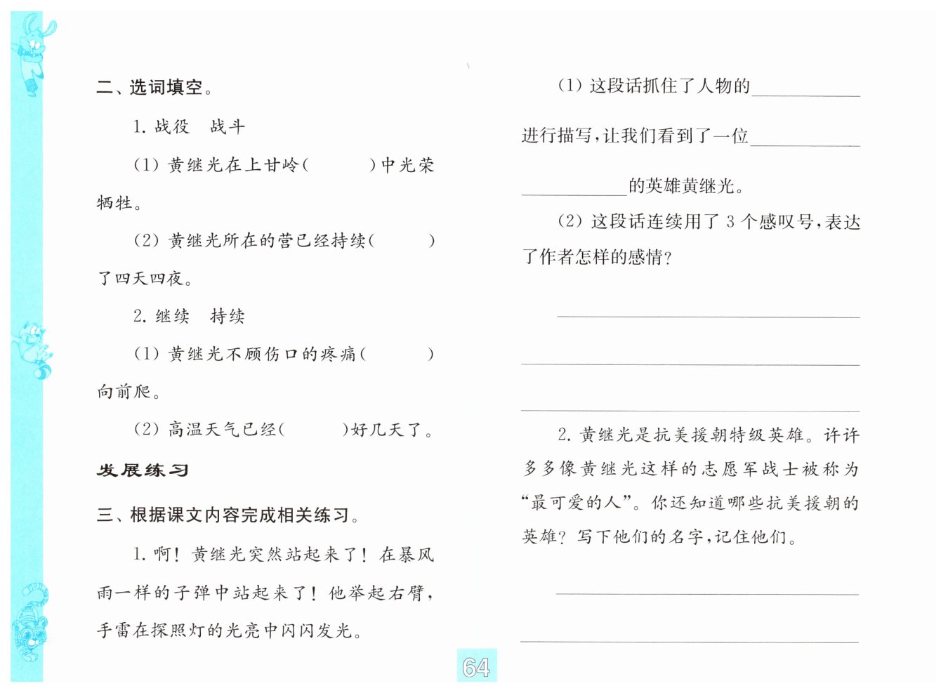 之情,對黃繼光頑強(qiáng)意志的驚嘆和敬佩。