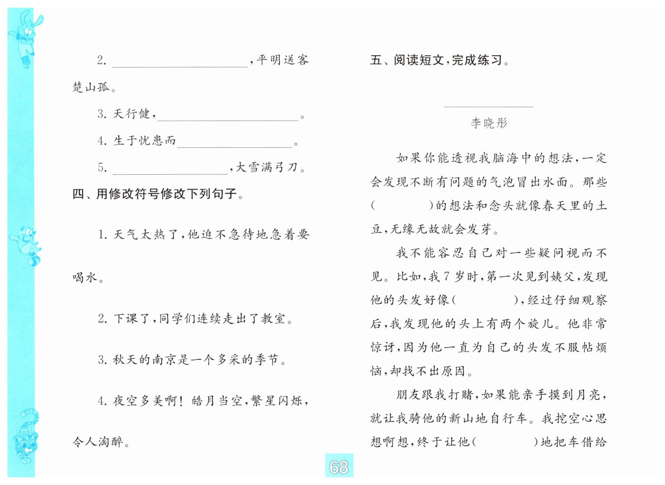 ①“淘”改為“陶”;②“皓月當空”與“繁星閃爍”刪其一(因為兩種景象不會同時出現(xiàn)在夜空)。