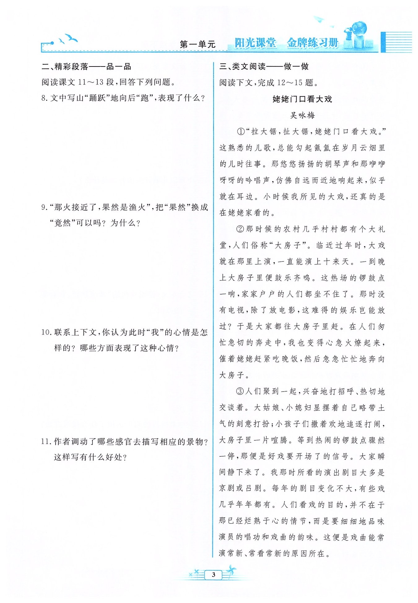 視覺、聽覺、觸覺、嗅覺。多角度、多側(cè)面地描寫景物,豐富細(xì)膩,有立體感,讓人有身臨其境之感。