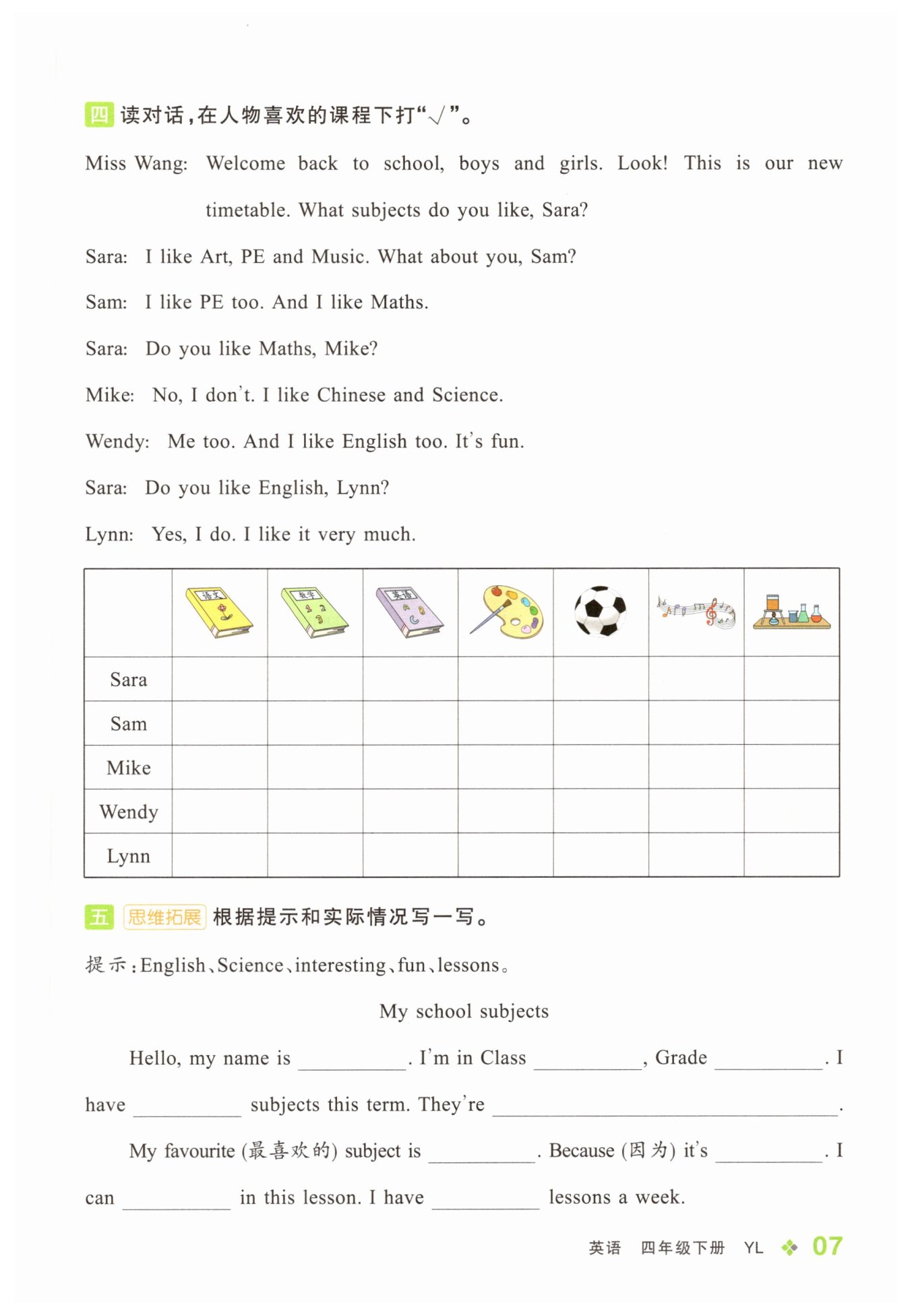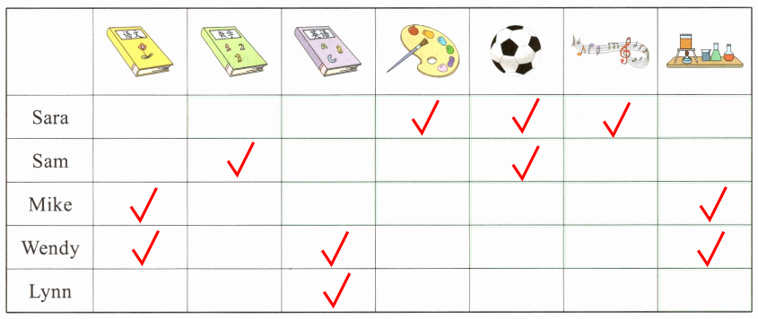 Chinese, Maths, Music, Art, PE, Science and English