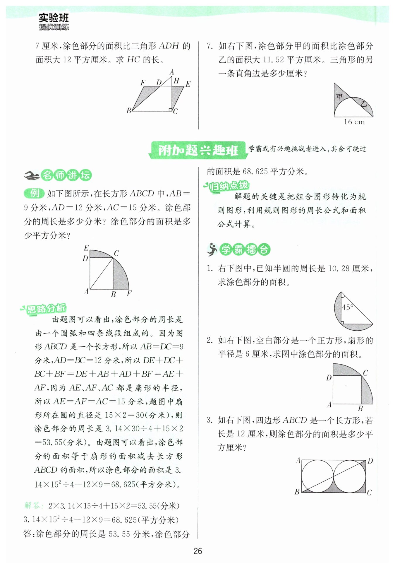 ?$3.14×62÷4=28.26($?平方厘米?$) $?