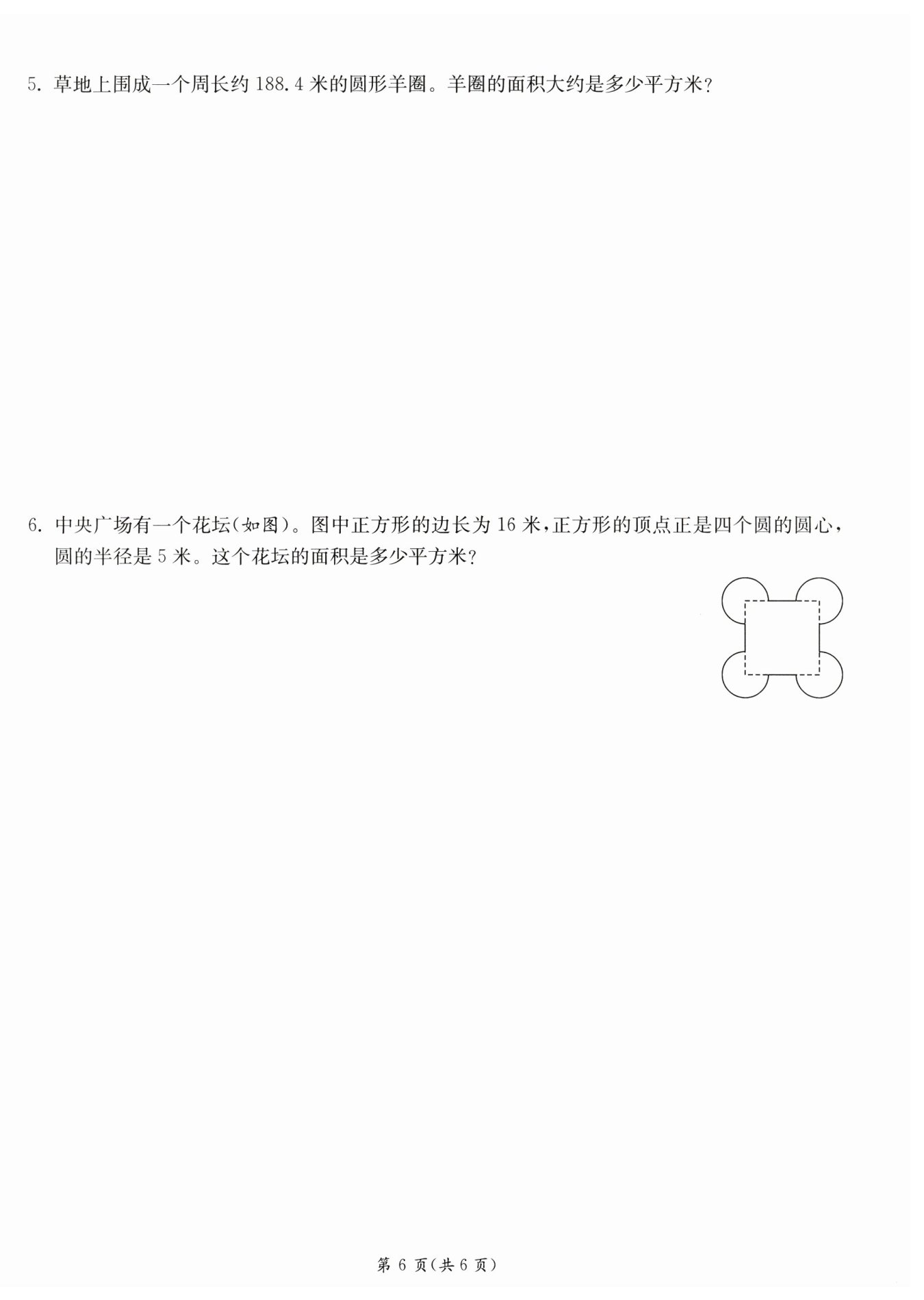 答:羊圈的面積大約是2826平方米。