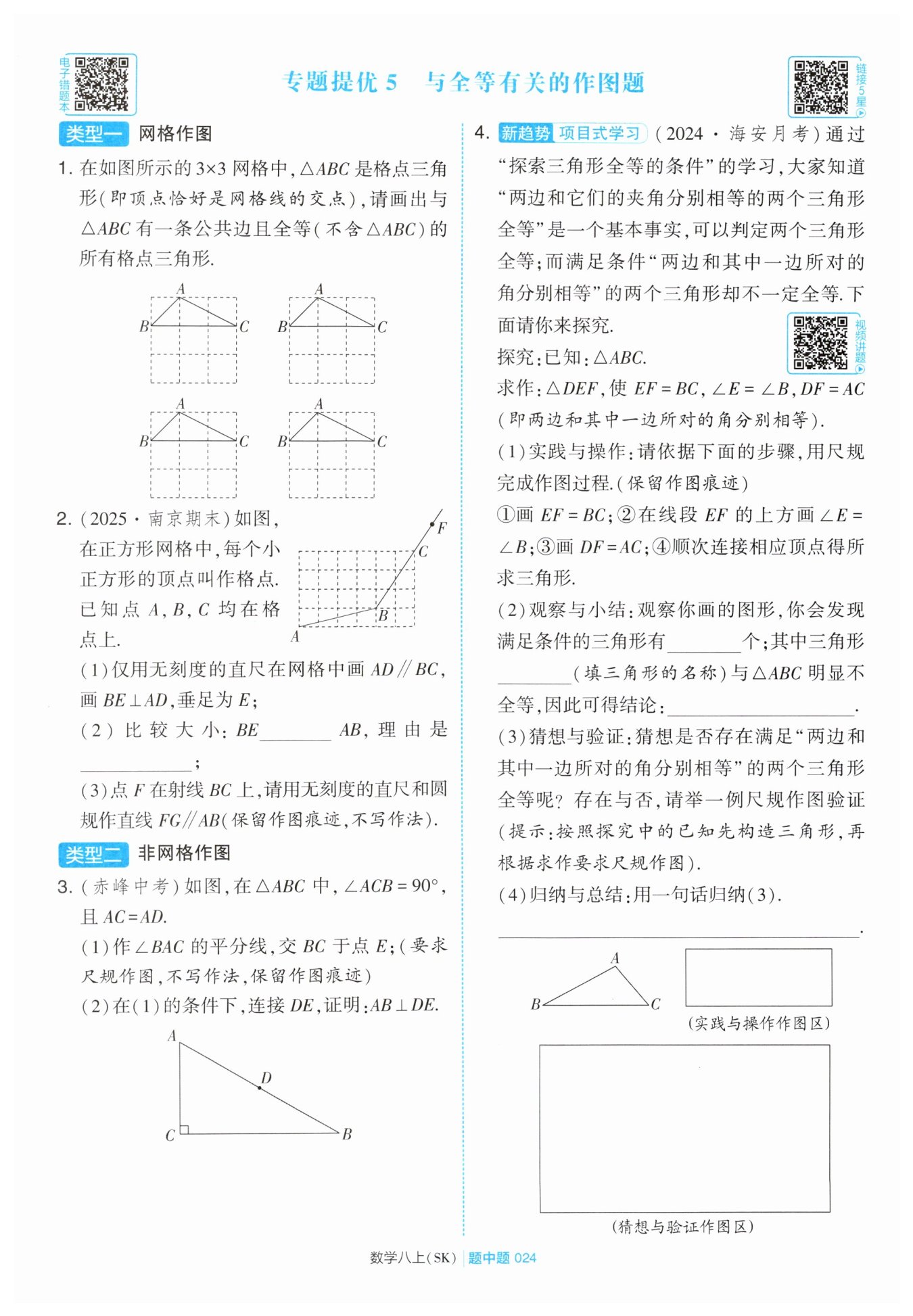 兩邊和其中一邊所對(duì)的角分別相等的兩個(gè)三角形不一定全等