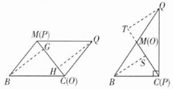 ①當$\triangle OPQ$為銳角三角形時,如圖,過點$B$作$BG\perp MC$于點$G,$過點$Q$作$QH\perp MC$于點$H,$