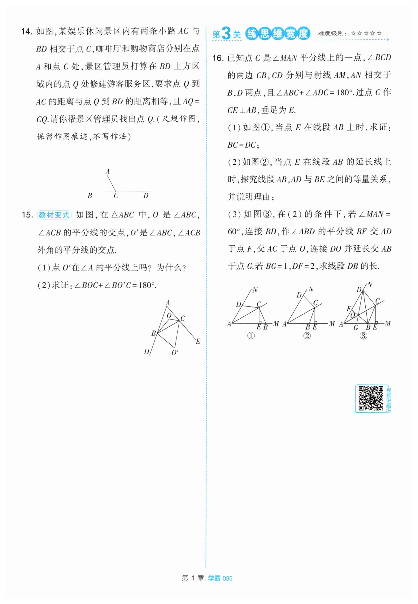 因為$AO$是$\angle MAN$的平分線,$BO$是$\angle ABD$的平分線,所以點$O$到$AD,$$AB,$$BD$的距離相等,所以$\angle ODH=\angle ODF。$