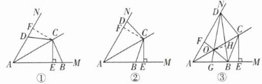 如圖①,過點$C$作$CF\perp AN,$垂足為$F。$