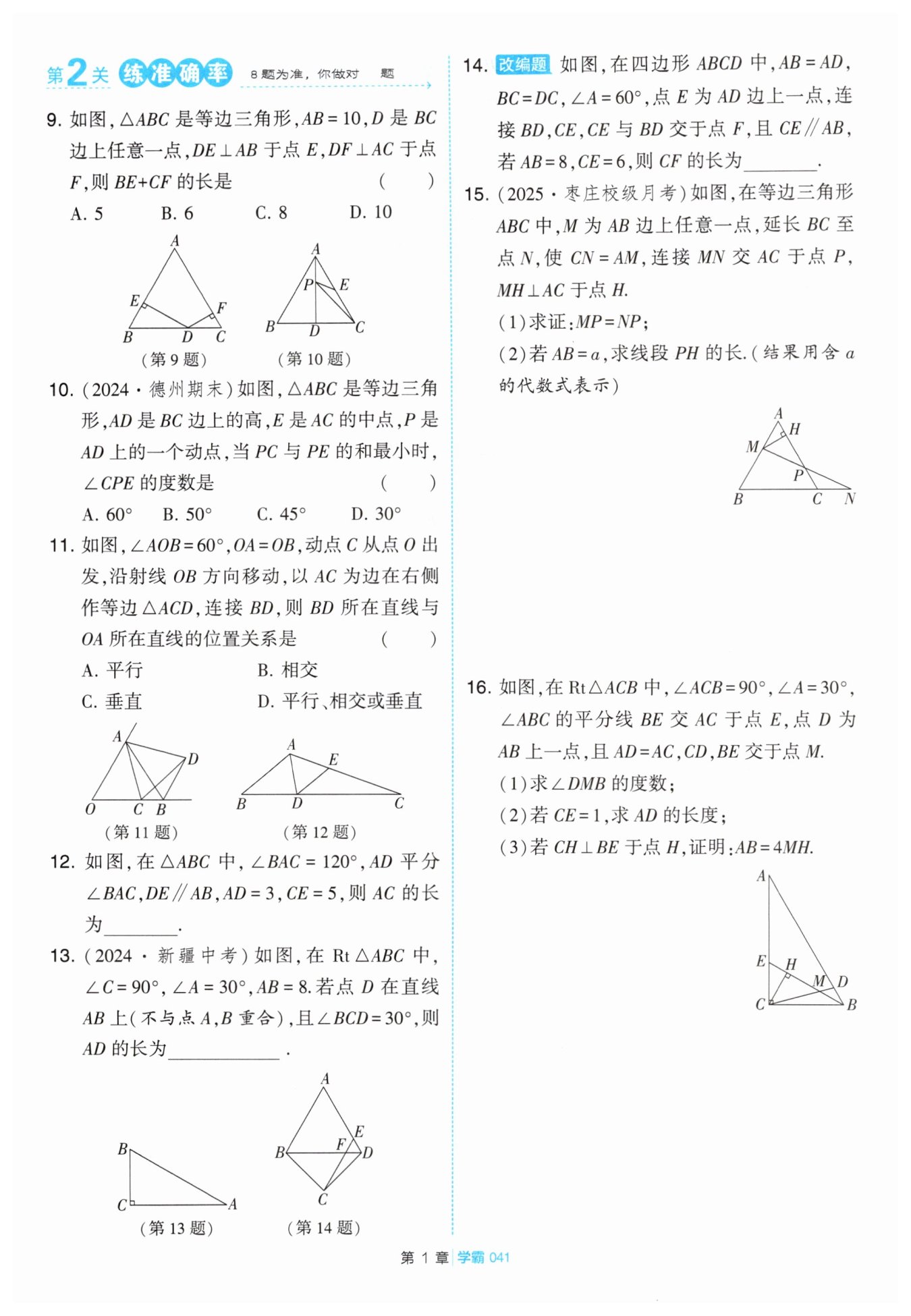 (3)$\because CH\perp BE,$$\therefore \angle CHB = 90^{\circ}.$$\because \angle HMC=\angle DMB = 45^{\circ},$$\therefore \angle HCM=\angle HMC = 45^{\circ},$$\therefore HM = HC.$$\because \angle CHB = 90^{\circ},$$\angle EBC=\dfrac{1}{2}\angle ABC = 30^{\circ},$$\therefore HC = HM=\dfrac{1}{2}BC.$$\because \angle A = 30^{\circ},$$\angle ACB = 90^{\circ},$$\therefore BC=\dfrac{1}{2}AB,$$\therefore AB = 2BC = 4MH.$