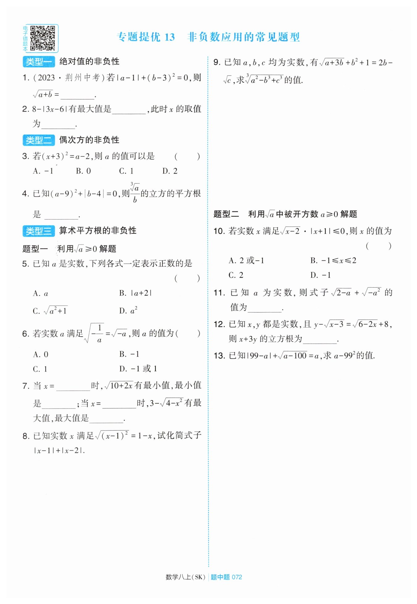 解:$\sqrt{a + 3b}+b^2 + 1 = 2b-\sqrt{c},$化簡得$\sqrt{a + 3b}+(b - 1)^2+\sqrt{c}=0,$根據(jù)算術(shù)平方根和偶次方的非負(fù)性可得各項都為0,即$a + 3b = 0,$$b - 1 = 0,$$c = 0,$解得$a=-3,$$b = 1,$$c = 0,$所以$\sqrt[3]{a^2 - b^3 + c^3}=\sqrt[3]{9 - 1+0}=2。$