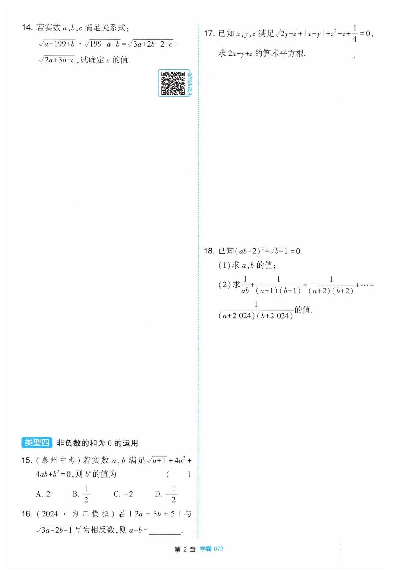 (1)$\because(ab - 2)^2\geq0,$$\sqrt{b - 1}\geq0,$$(ab - 2)^2+\sqrt{b - 1}=0,$$\therefore ab - 2 = 0,$$b - 1 = 0,$$\therefore a = 2,$$b = 1。$