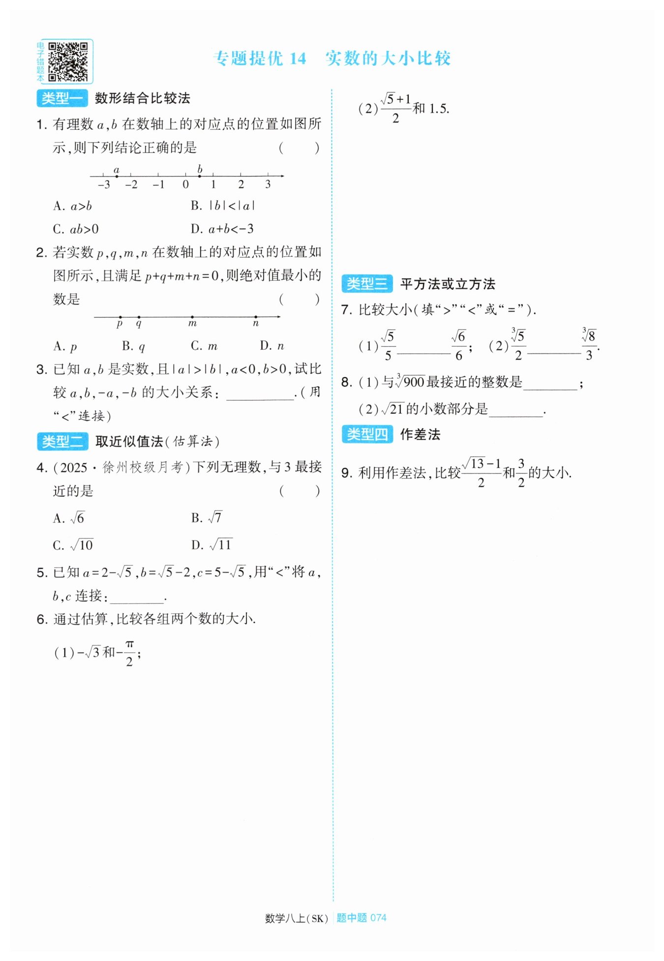 解:計(jì)算$\frac{\sqrt{13}-1}{2}-\frac{3}{2}=\frac{\sqrt{13}-1 - 3}{2}=\frac{\sqrt{13}-4}{2},$因?yàn)?\sqrt{13}<\sqrt{16}=4,$即$\sqrt{13}-4<0,$所以$\frac{\sqrt{13}-4}{2}<0,$所以$\frac{\sqrt{13}-1}{2}<\frac{3}{2}。$