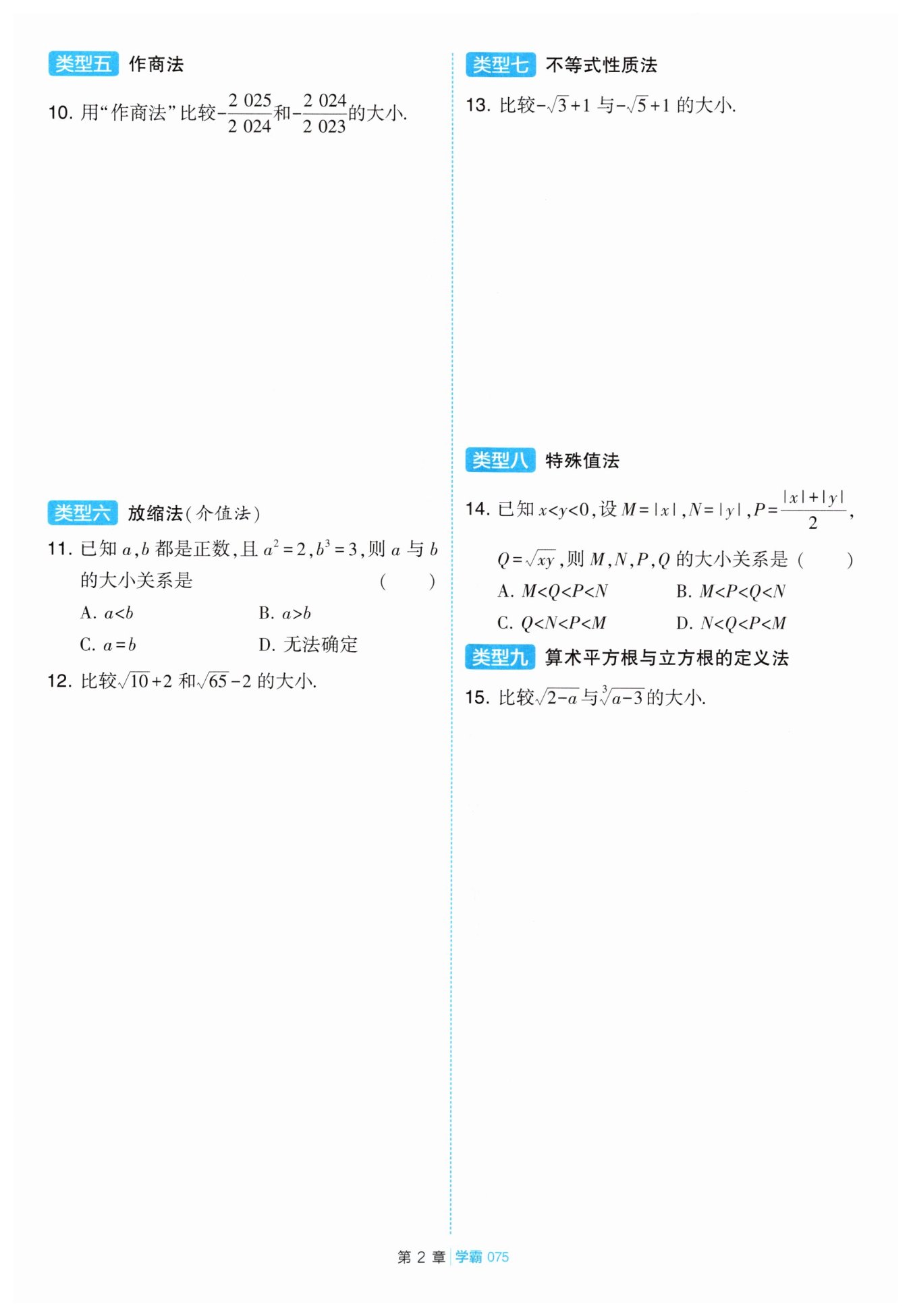 解:計算$\frac{-\frac{2025}{2024}}{-\frac{2024}{2023}}=\frac{2025}{2024}\times\frac{2023}{2024}=\frac{2025\times2023}{2024\times2024}=\frac{(2024 + 1)(2024-1)}{2024\times2024}=\frac{2024^{2}-1}{2024^{2}}<1,$因為兩個數(shù)都是負數(shù),所以$-\frac{2025}{2024}>-\frac{2024}{2023}。$