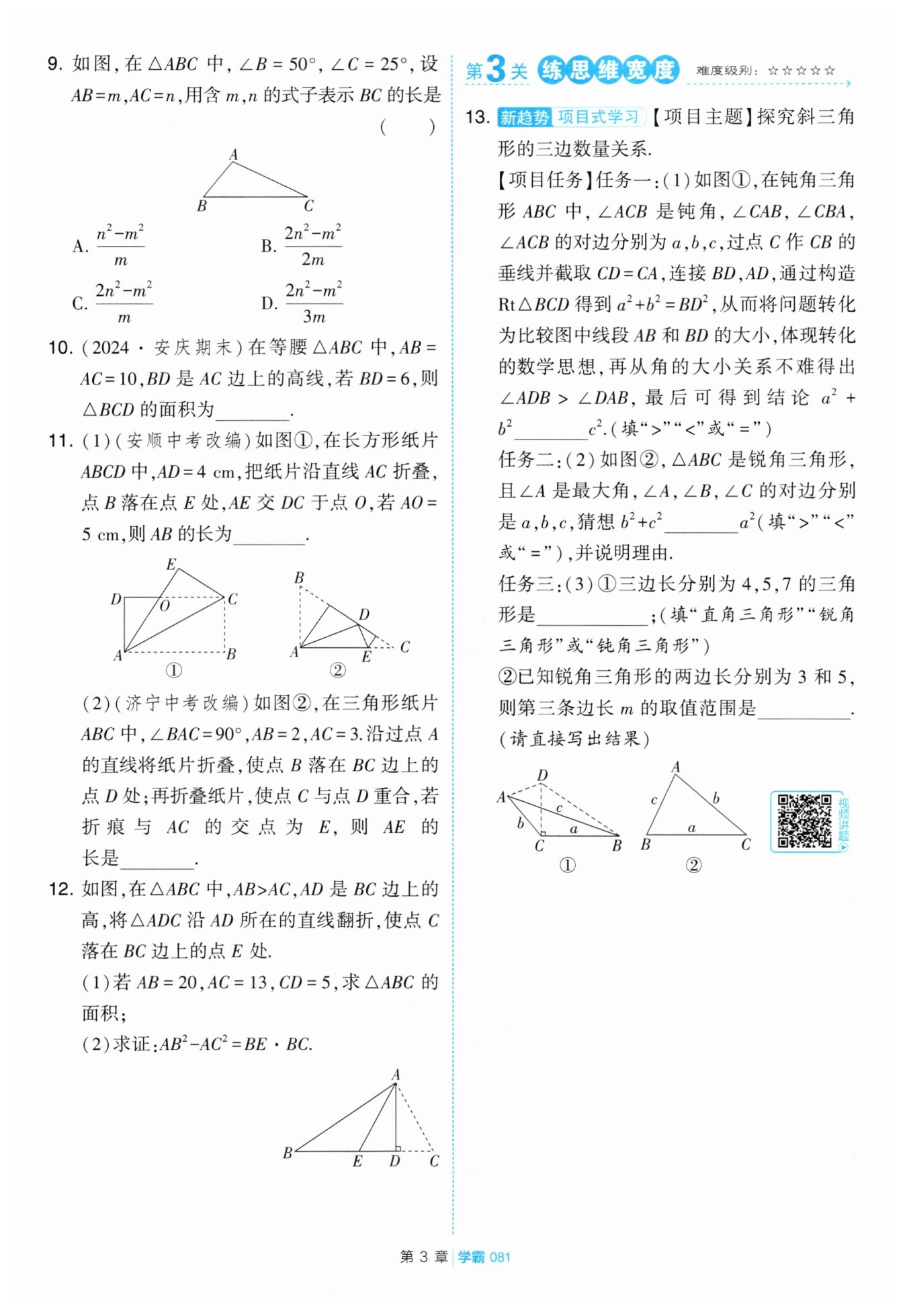 在$Rt\triangle ADC$中,由勾股定理得$AC^{2}=AD^{2}+DC^{2},$在$Rt\triangle ADB$中,由勾股定理得$BD^{2}=AB^{2}-AD^{2}。$