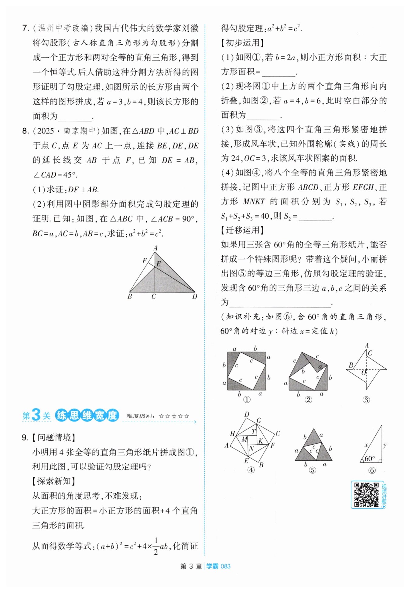 所以$\frac{1}{2}a^2+\frac{1}{2}b^2=\frac{1}{2}c\cdot DF-\frac{1}{2}c\cdot EF=\frac{1}{2}c\cdot(DF - EF)=\frac{1}{2}c\cdot DE=\frac{1}{2}c^2,$