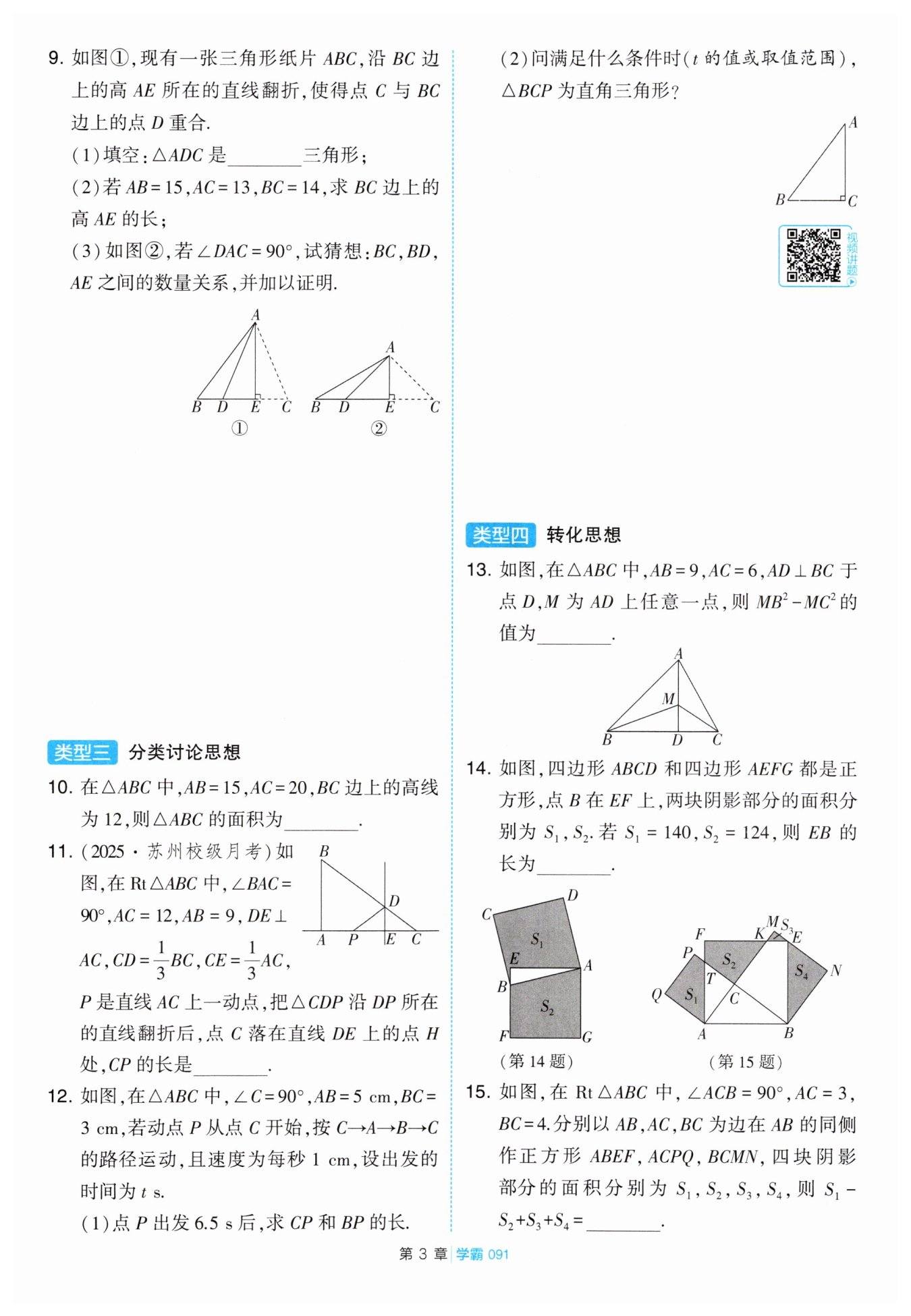 因為$\frac{1}{2}AB\cdot CP=\frac{1}{2}AC\cdot BC,$即$\frac{1}{2}\times5CP=\frac{1}{2}\times3\times4,$解得$CP=\frac{12}{5}\mathrm{cm}。$