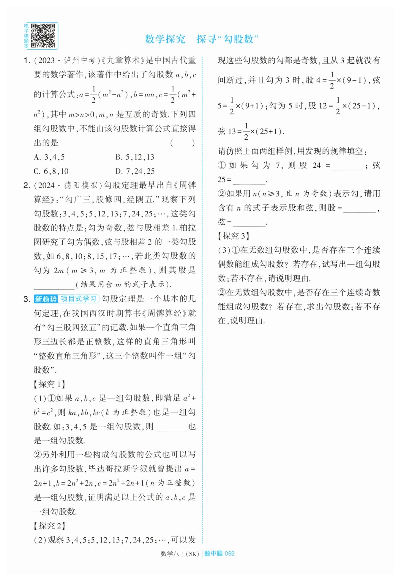解:①存在。因?yàn)?6^2+8^2 = 36 + 64 = 100 = 10^2,$所以6,8,10是一組勾股數(shù)。