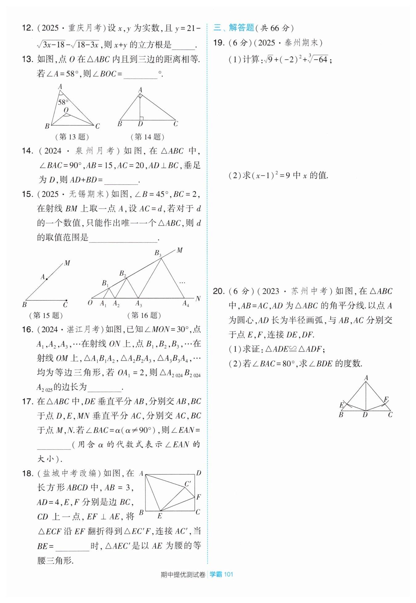由作圖知$AE = AD,$$\therefore\angle AED=\angle ADE,$