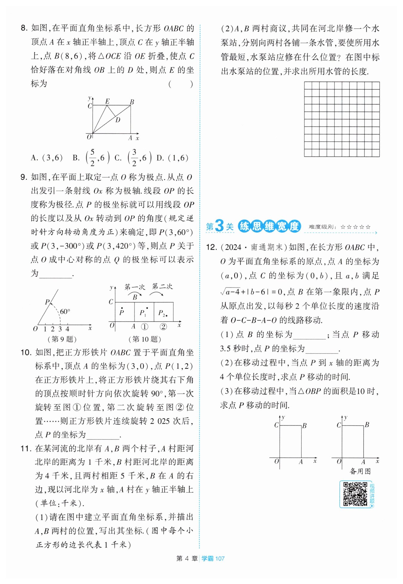 解: (2) 由題意可得,在移動過程中,當點$P$到$x$軸的距離為$4$個單位長度時,存在兩種情況。