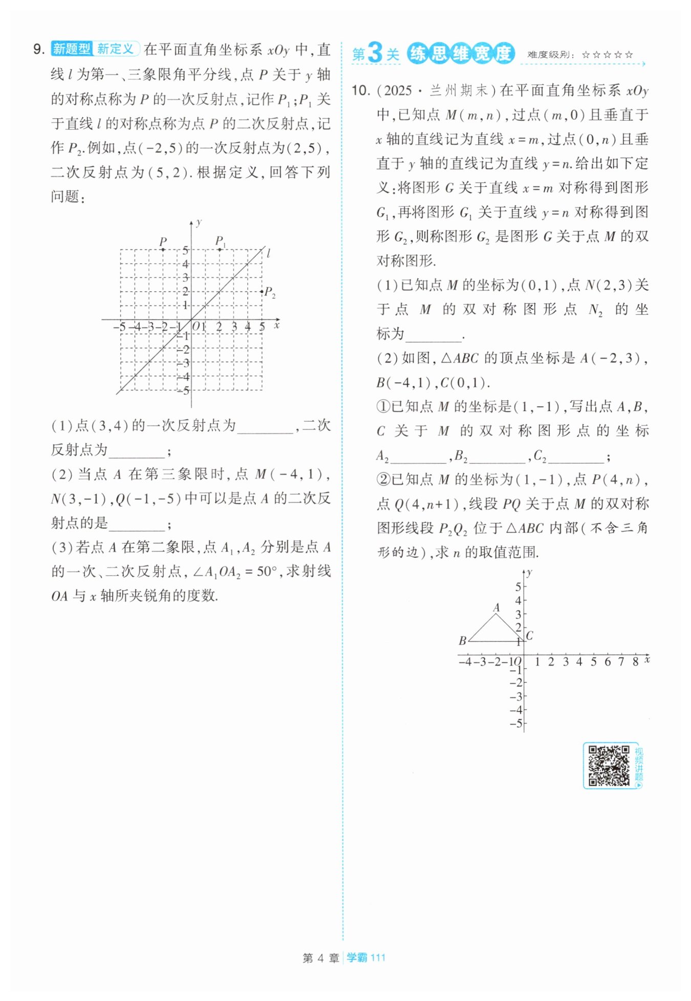 $關(guān)于直線y=?1的對(duì)稱點(diǎn)分別為P_{2}(?2,?2?n),Q_{2}(?2,?3?n)$