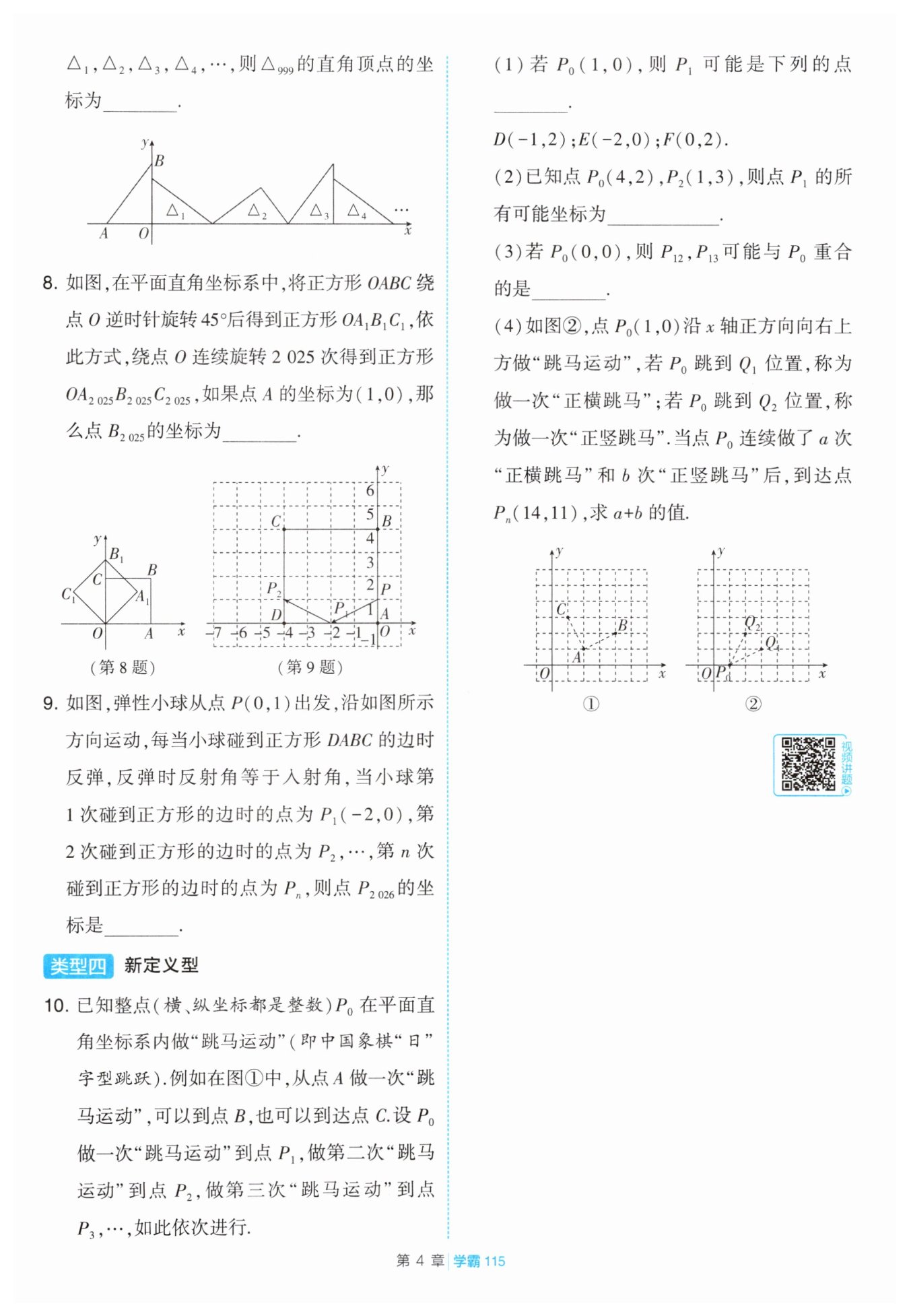 解:做“正橫跳馬”時,橫坐標增加$2,$縱坐標增加$1,$做“正豎跳馬”時,橫坐標增加$1,$縱坐標增加$2。$