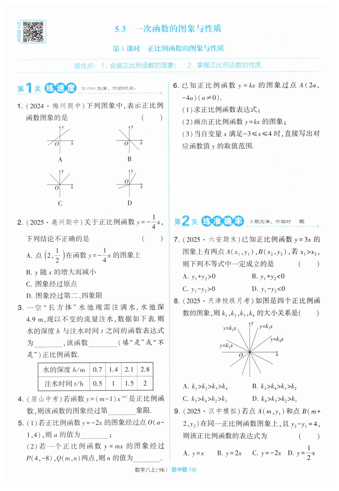 ∵正比例函數(shù)$y = kx$的圖象過點(diǎn)$A(2a,-4a)(a\neq0),$