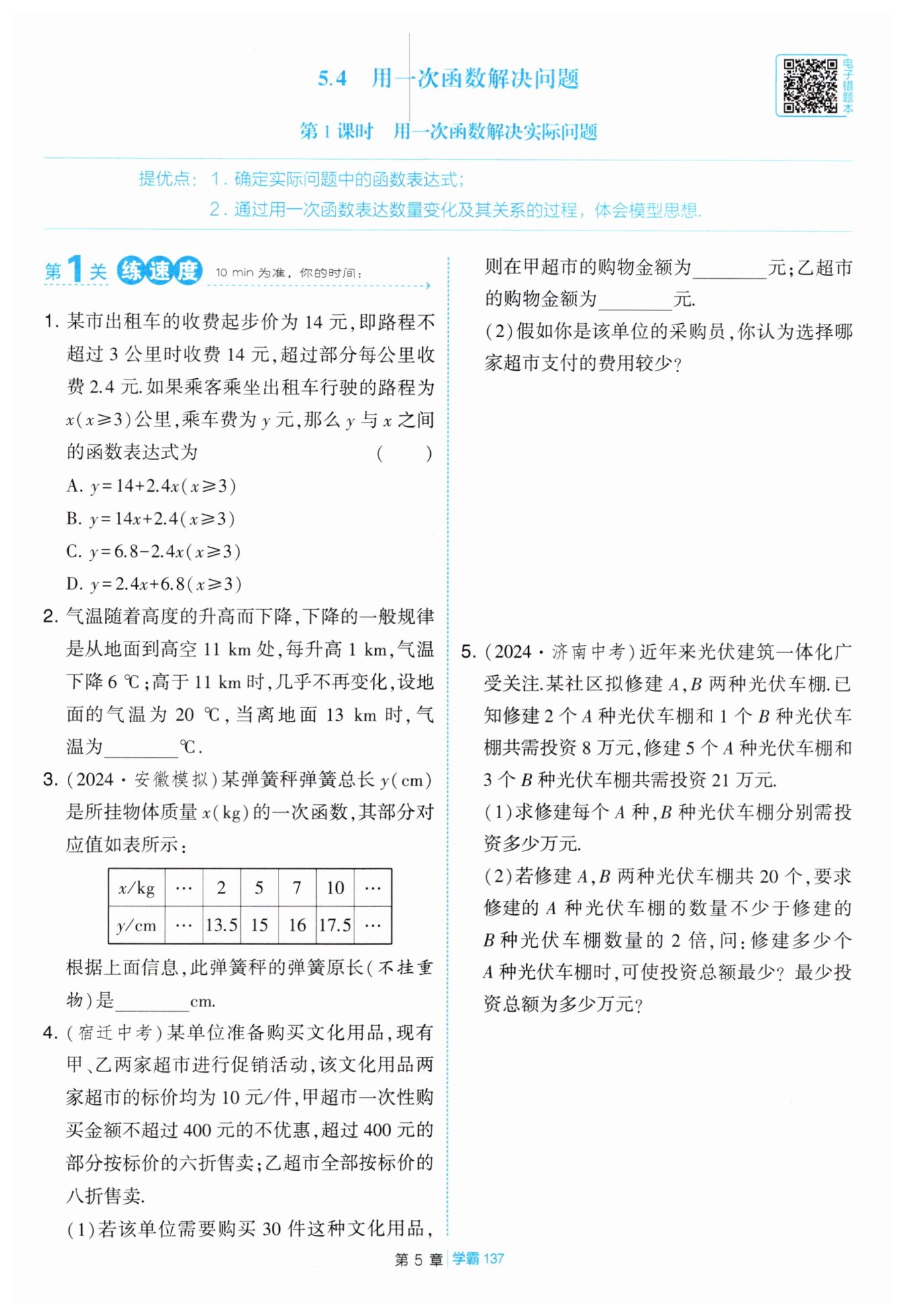 (2)設(shè)修建$A$種光伏車棚$m$個(gè),則修建$B$種光伏車棚$(20 - m)$個(gè),修建$A$種和$B$種光伏車棚共投資$W$萬元,根據(jù)題意,得$m\geq2(20 - m),$解得$m\geq\frac{40}{3},$$W = 3m + 2(20 - m)=m + 40,$$\because1>0,$$\therefore W$隨$m$的增大而增大,$\therefore$當(dāng)$m = 14$時(shí),$W$取得最小值,此時(shí)$W = 14 + 40 = 54$(萬元)。答:修建14個(gè)$A$種光伏車棚時(shí),投資總額最少,最少投資總額為54萬元。