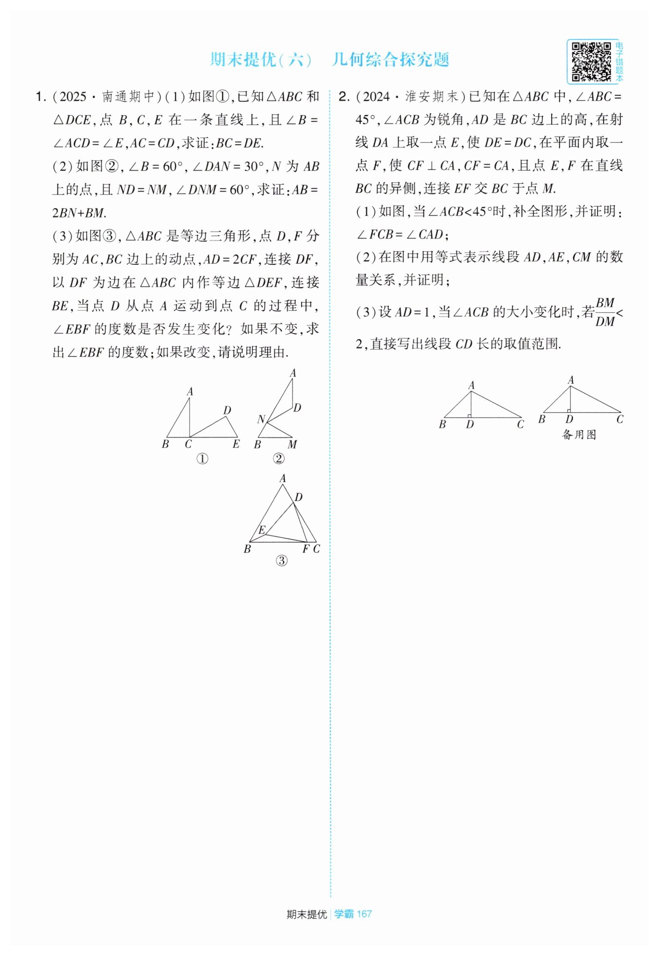 $∵AD=2CF=BM+CF,且AC=BC,∴CD=FM$